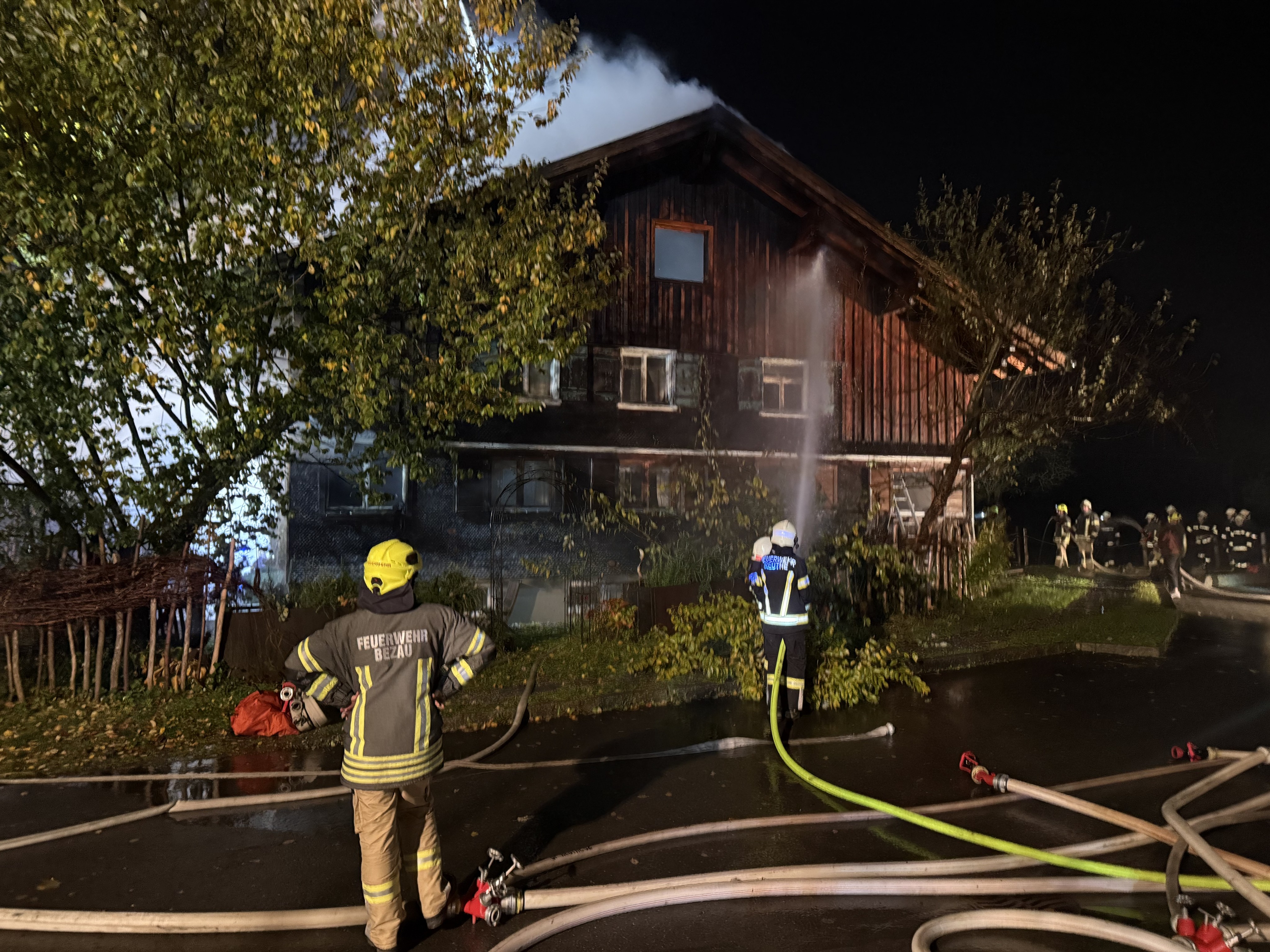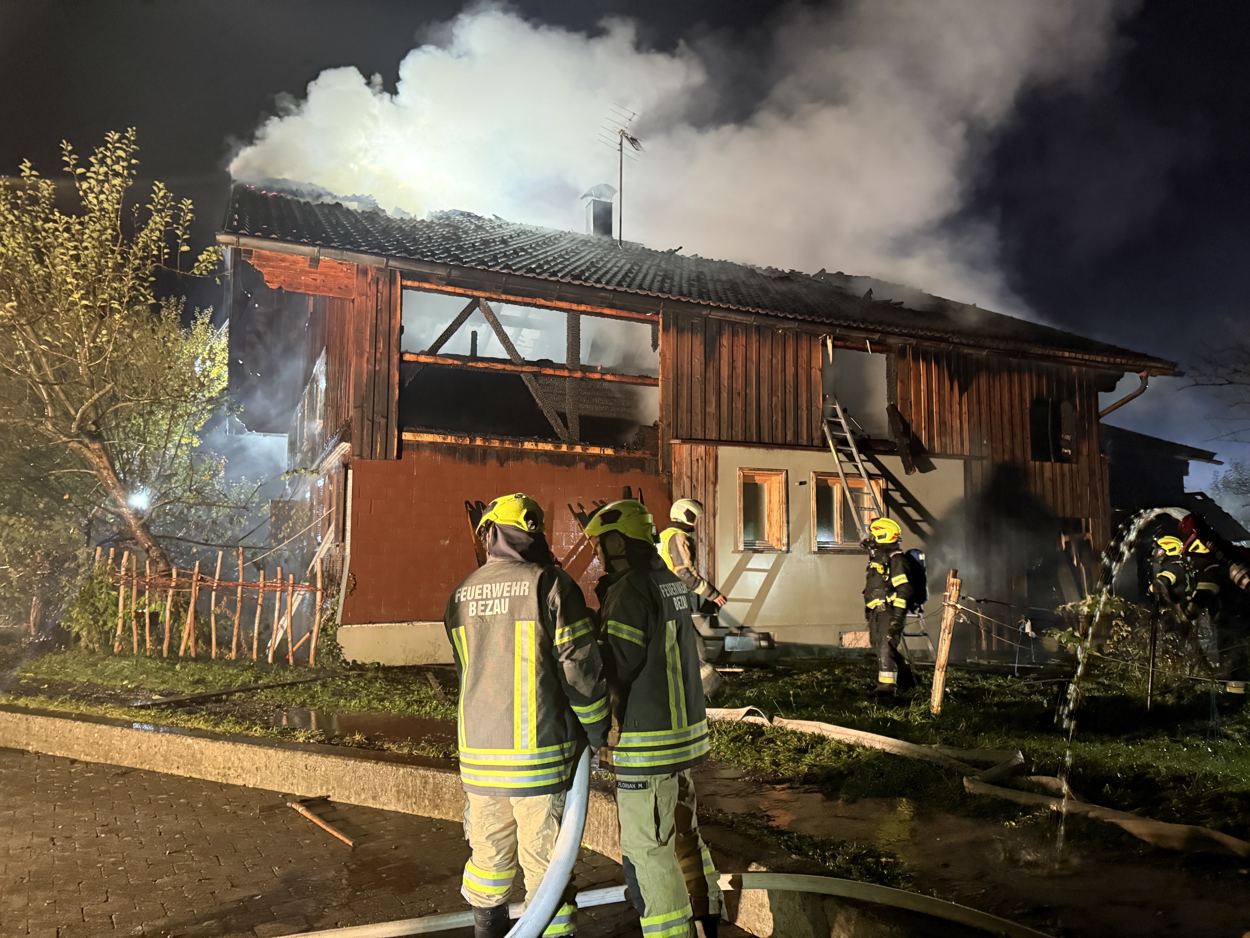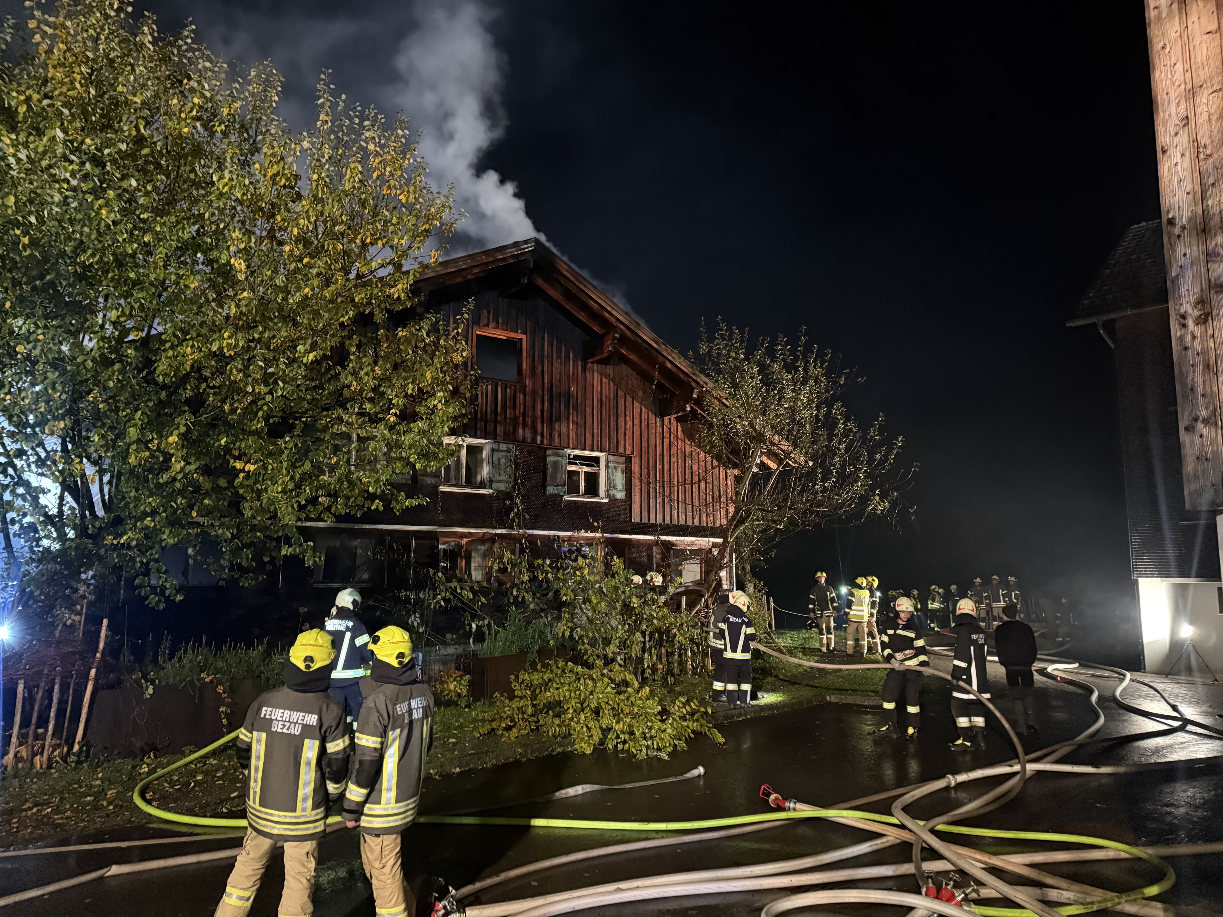 Ein Wohnhaus in Bezau ist in der Nacht auf den 25. Oktober 2025 vollständig ausgebrannt. Das Gebäude stand beim Eintreffen der Einsatzkräfte bereits in Vollbrand. Laut Polizei war das Haus zum Zeitpunkt des Brandes unbewohnt.