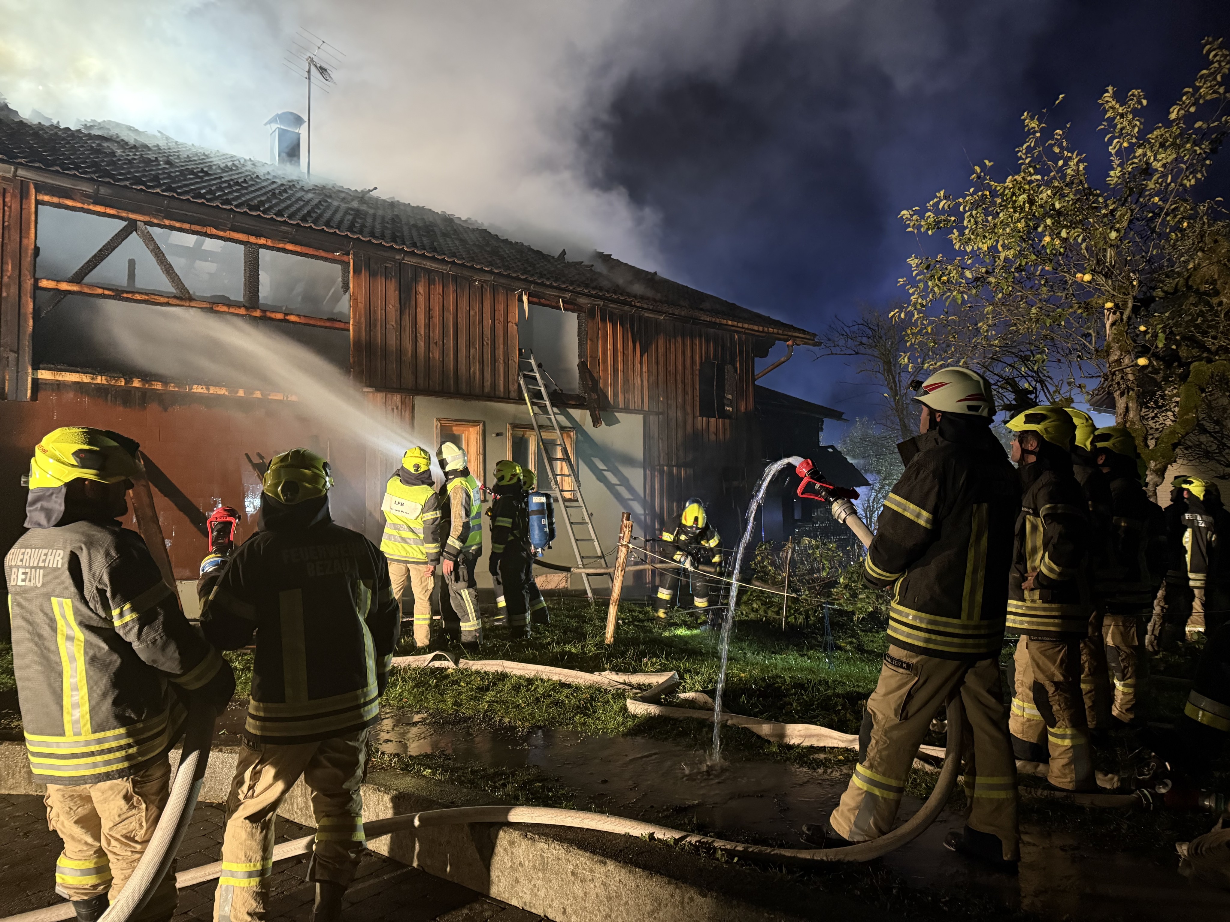 Großbrand in Bezau: 200 Feuerwehrleute im Einsatz