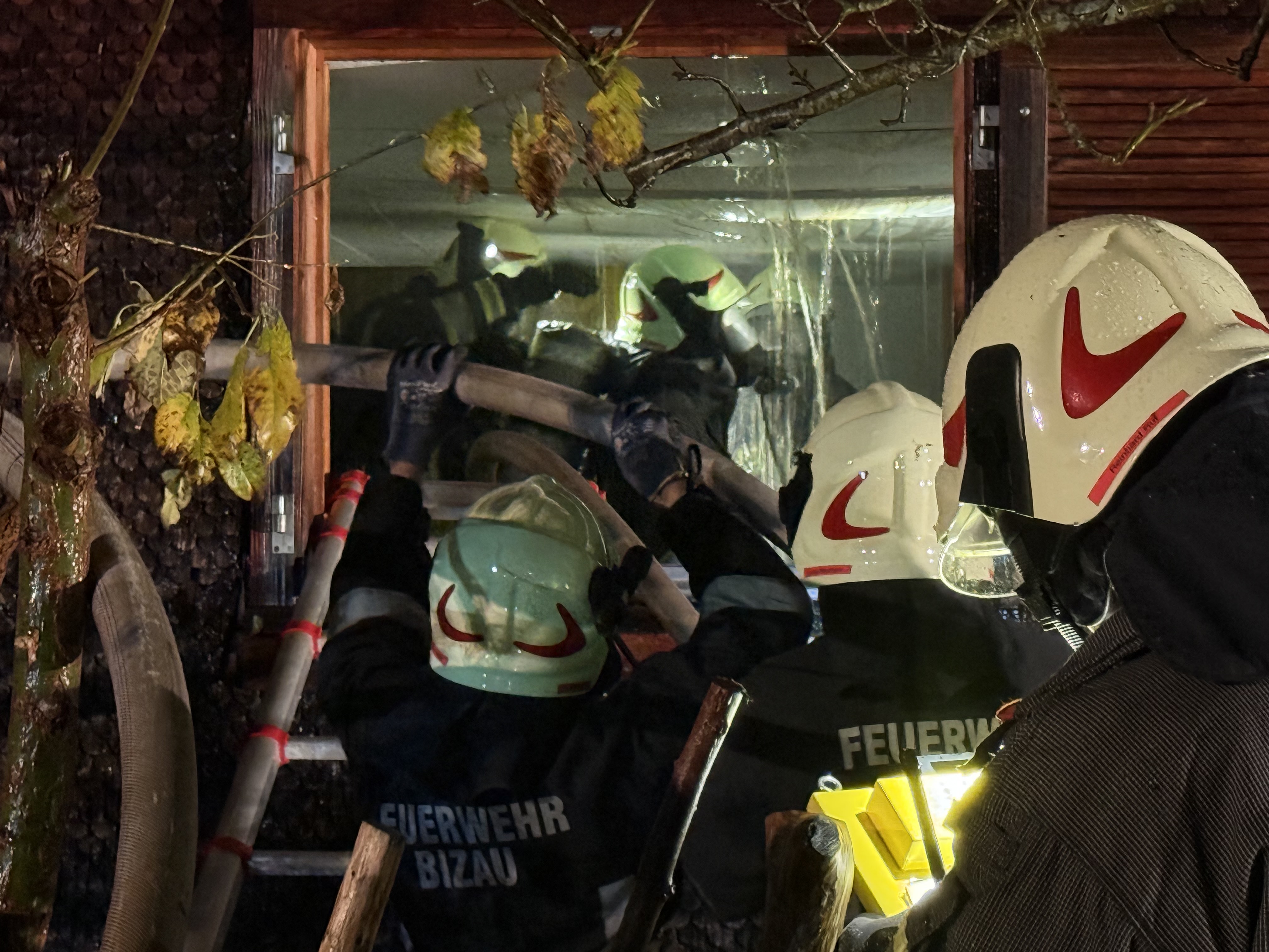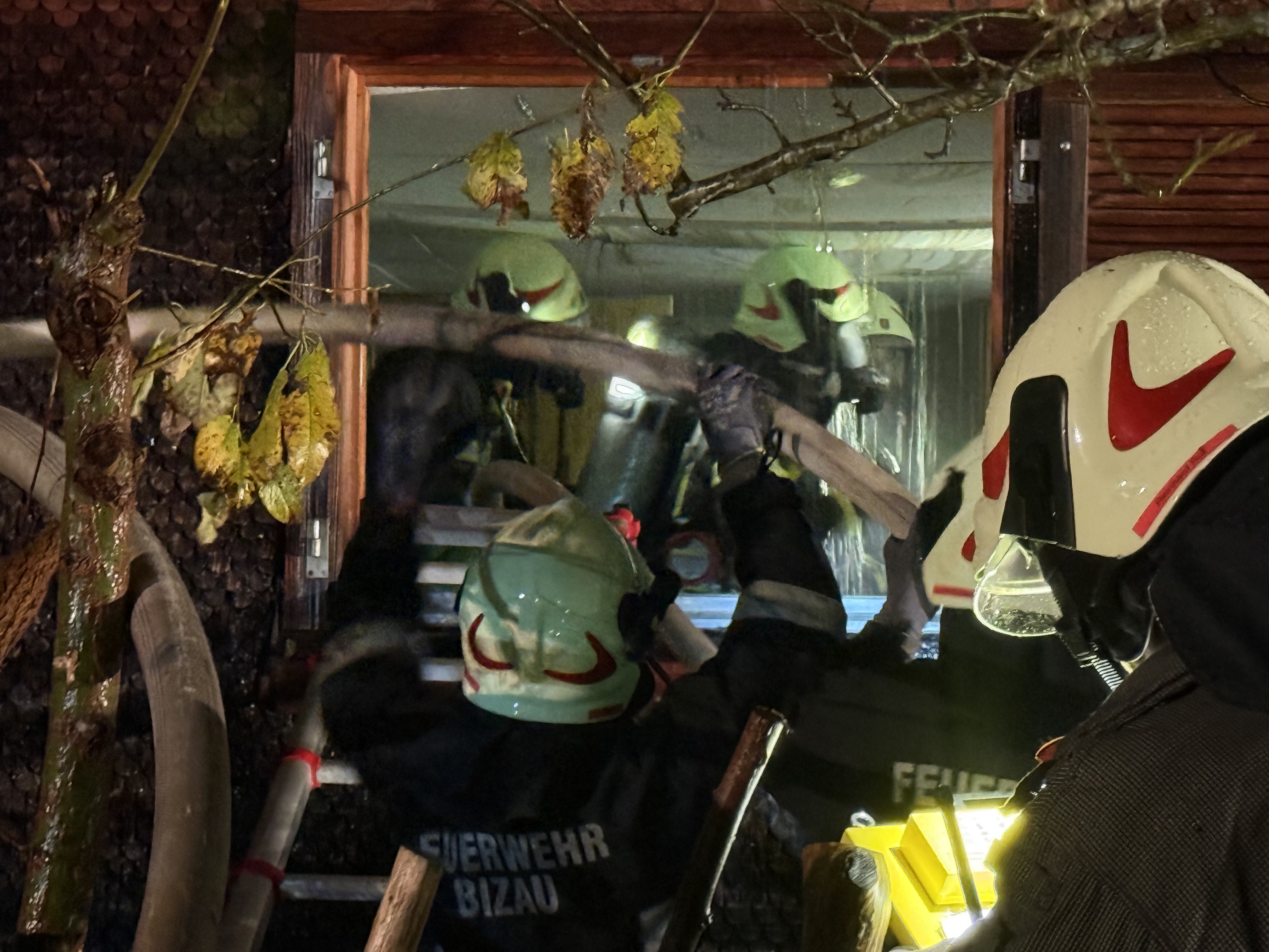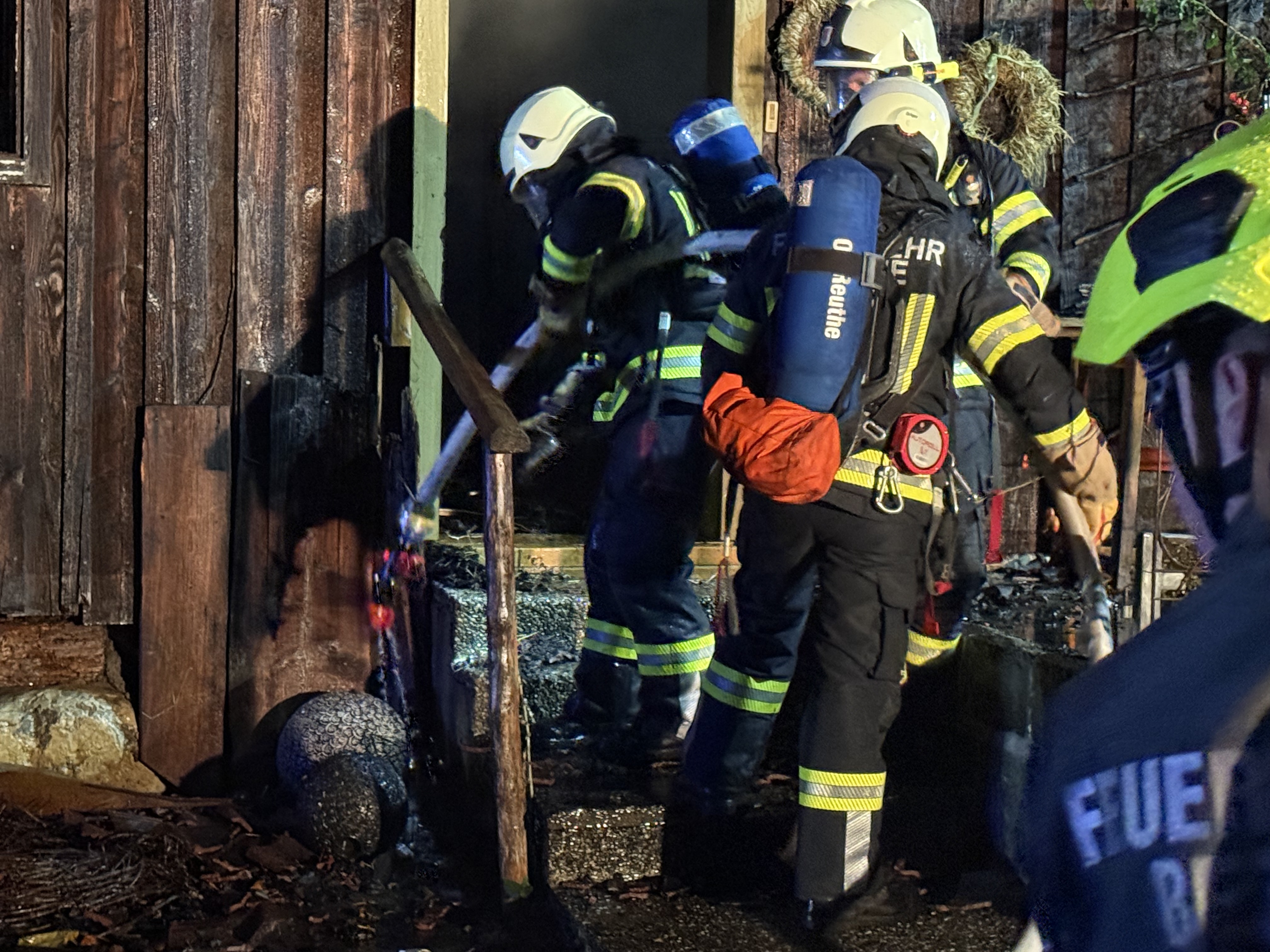 Ein Eindringen in das brennende Haus war zunächst nicht möglich. Wegen der Intensität des Feuers konnte der Atemschutz nicht eingesetzt werden. Erst später stellte sich heraus, dass sich keine Personen im Inneren befanden.