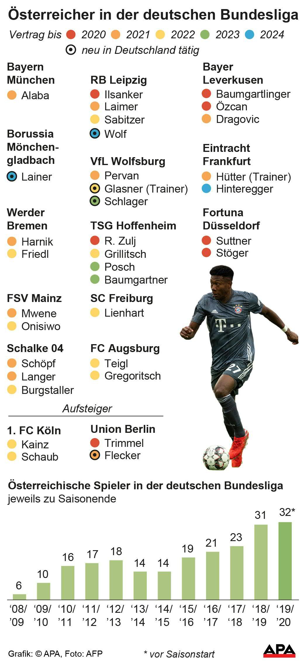 Die Anzahl der österreichischen Spieler in der deutschen Bundesliga ist so hoch wie nie - einzig Dortmund, die Hertha und Paderborn verzichten auf österreichische Importspieler. VOL.AT hat die Legionäre in der höchsten deutschen Spielklasse nach Vereinen aufgelistet und die Einsatzchancen der Akteure analysiert.
