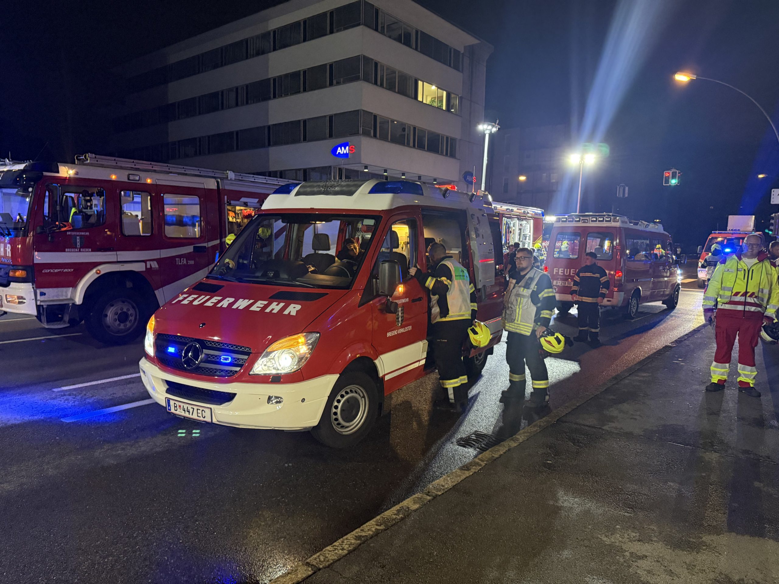• Freiwillige Feuerwehren Bregenz Stadt, Bregenz Rieden, Bregenz Vorkloster, Bregenz Fluh, Hard sowie die Betriebsfeuerwehr der VKW mit insgesamt 120 Einsatzkräften