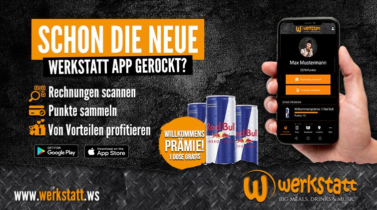 Dank unserer App hast du alle Werkstatt-News aus Rankweil, Imst, Kufstein und Sölden und vieles mehr immer im Überblick. Sammle außerdem Treuepunkte indem du einfach deine Werkstatt Rechnungen scannst - Es warten tolle Prämien auf dich & als welcome für deine Registrierung gibt es ein Red Bull abzuholen!