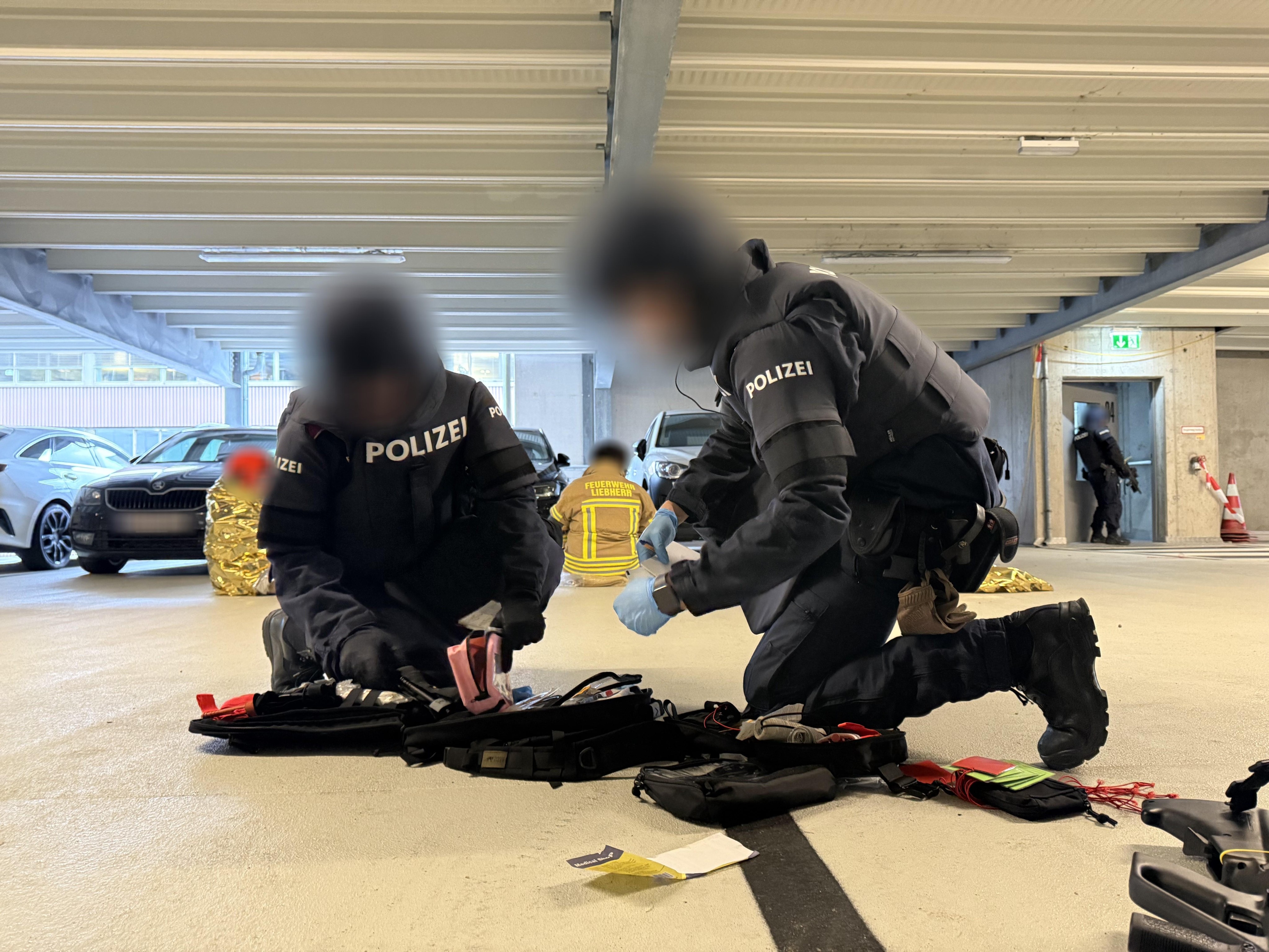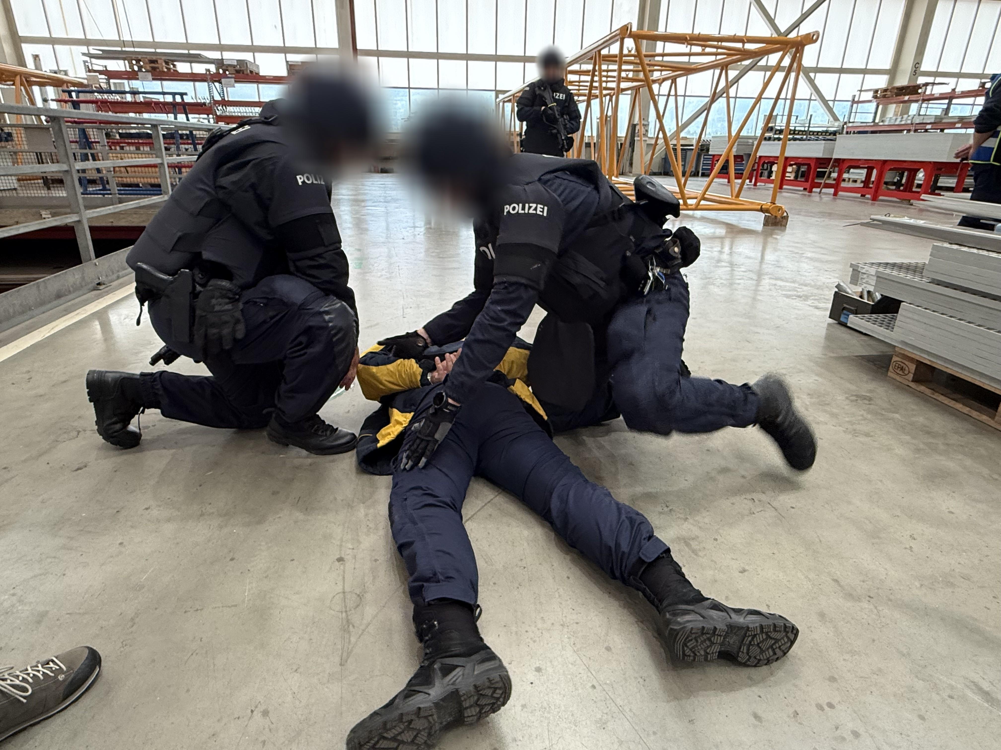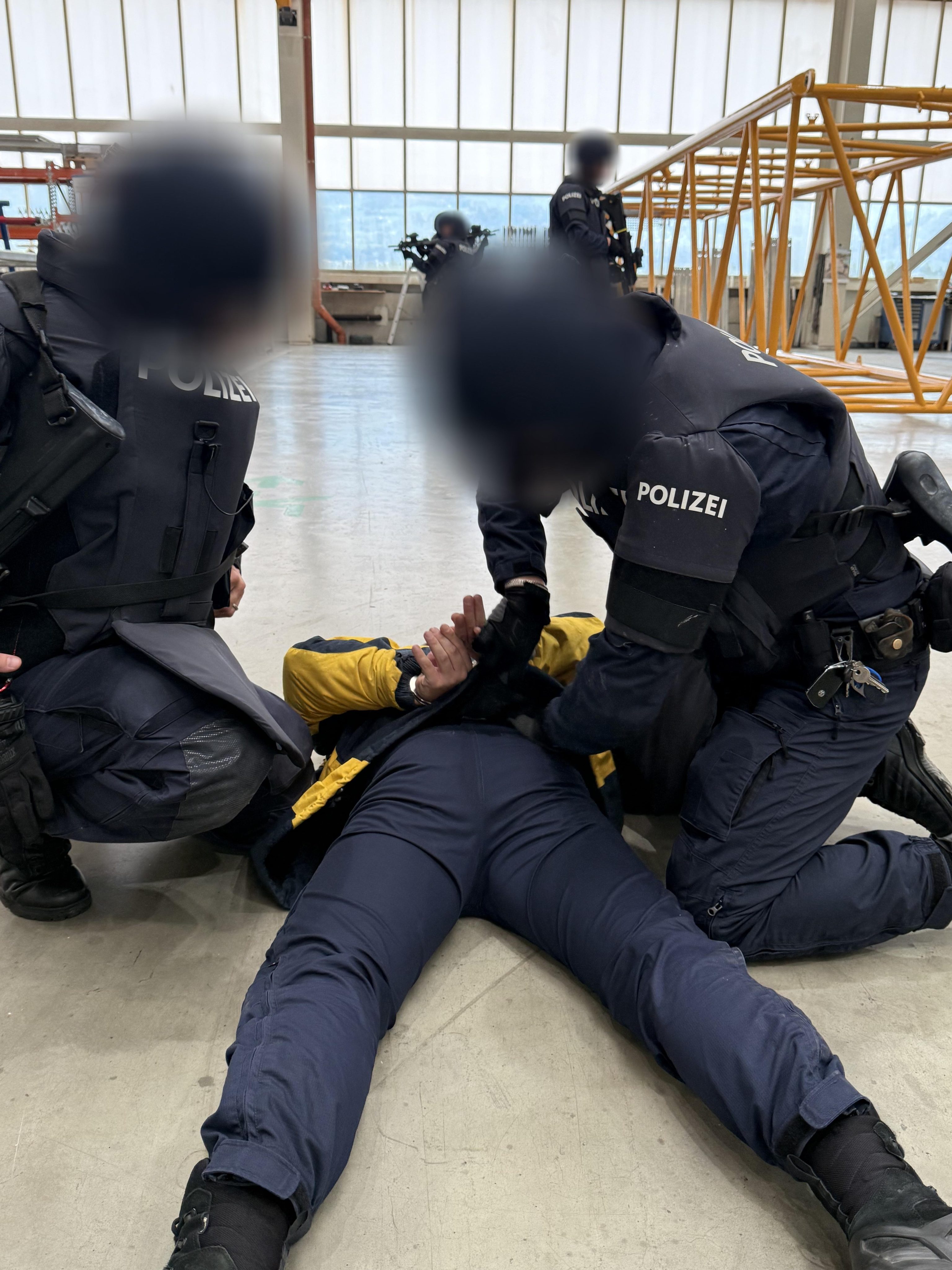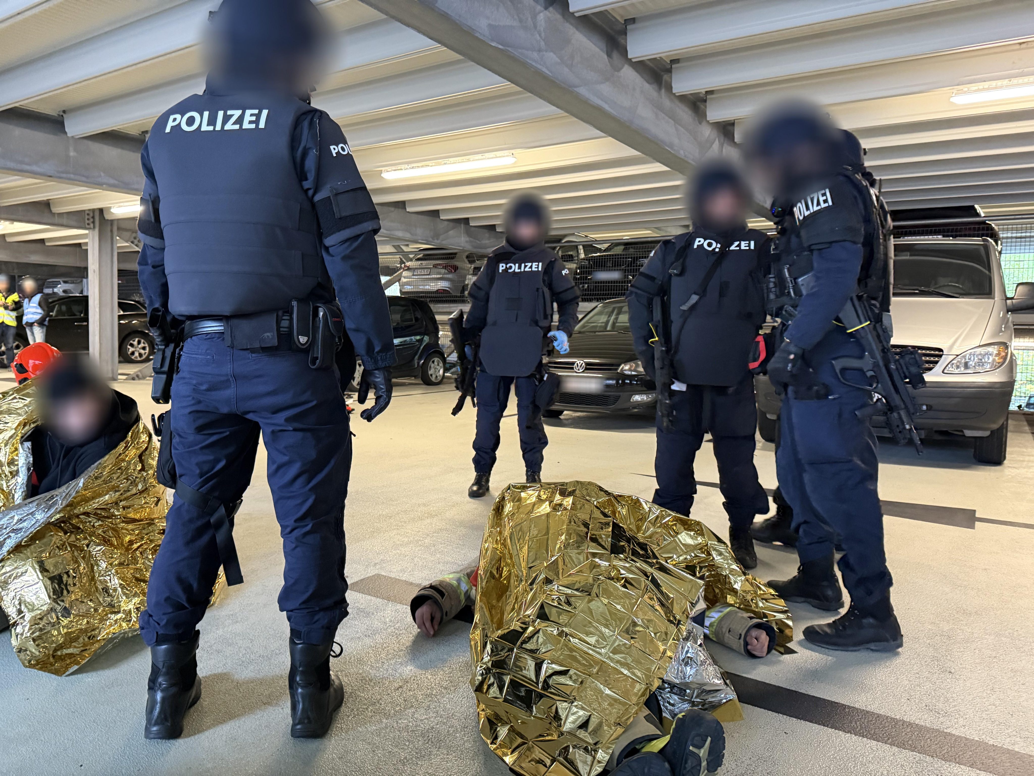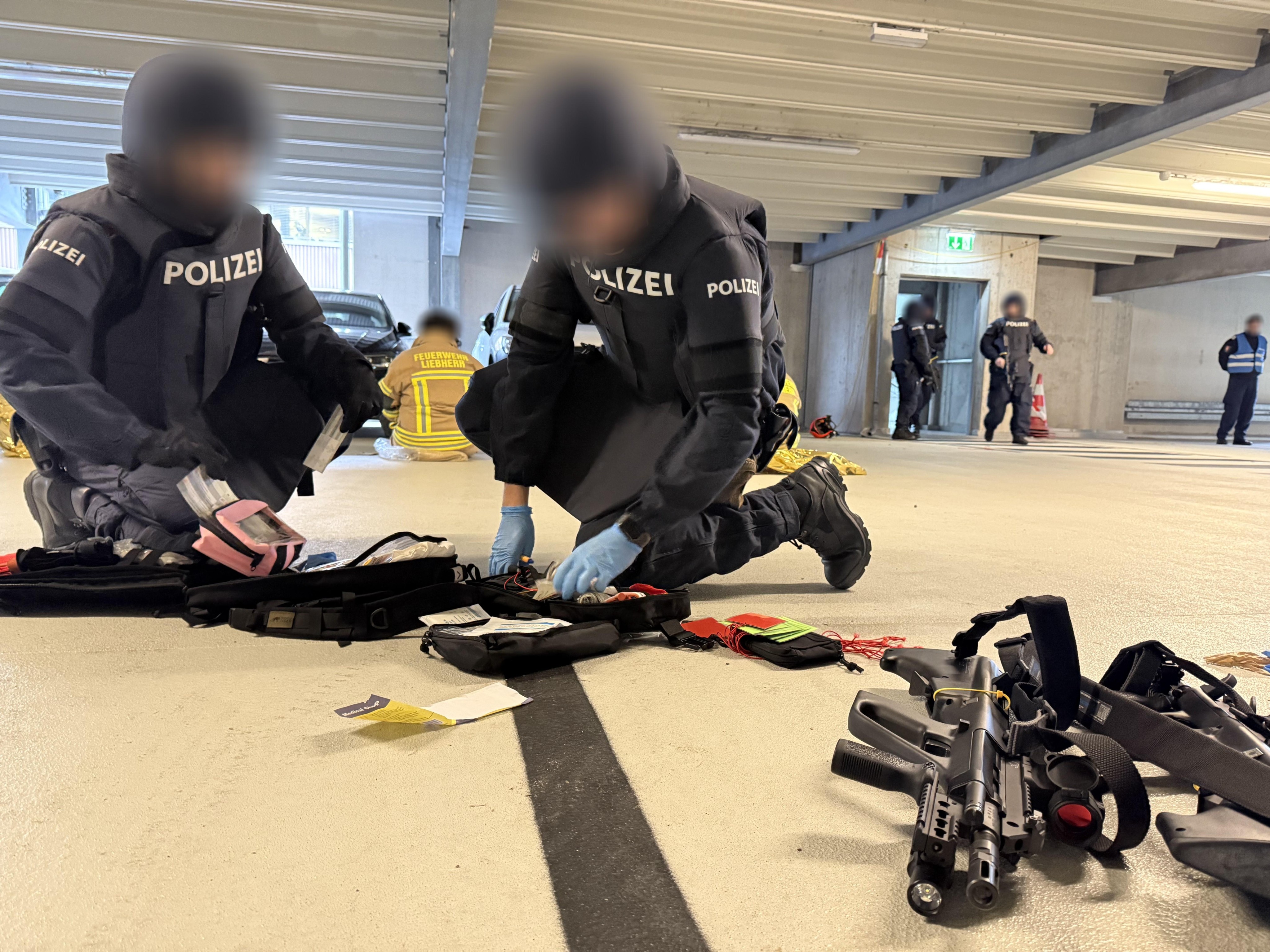 Trainiert wurden Szenarien mit bewaffneten Tätern und Gefahrenlagen, die eine schnelle und koordinierte Reaktion erfordern. "Das heißt, wir haben Szenarien, wo sich Täter mit Schusswaffen und Messer ausgestattet haben", schilderte Bihlmayer. In einem weiteren Übungsteil wurde ein Fahrzeugbrand inszeniert, bei dem die Zusammenarbeit mit der Betriebsfeuerwehr getestet wurde.
