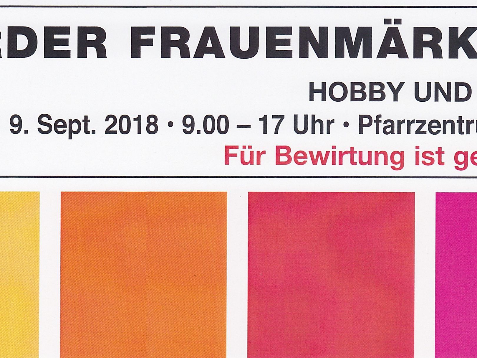 Am 9. September 2018 findet zwischen 9.00 Uhr und 17.00 Uhr das Harder Frauenmärktle im Pfarrzentrum Hard statt.