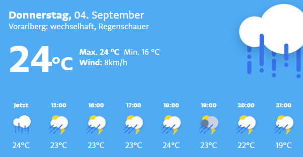 Am Donnerstag dominiert in Vorarlberg zunächst spätsommerliches Wetter mit Temperaturen bis zu 25 Grad. Gegen Abend steigt jedoch die Gewittergefahr deutlich an.