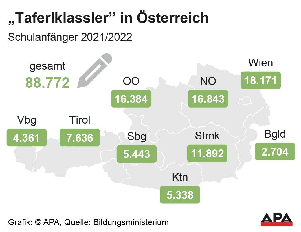 In Wien, NÖ und dem Burgenland starten laut Zahlen des Bildungsministeriums am 6. September rund 37.700 Kinder in den ersten Schultag, in den restlichen Ländern sind es am 13. September dann rund 51.000.