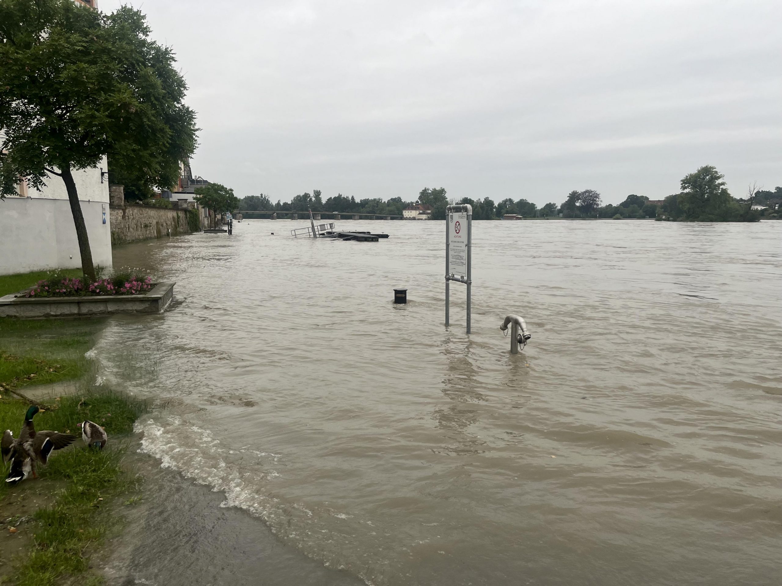 Innpromenade und Parkplatz Schiffsanlegestelle in Schärding gesperrt