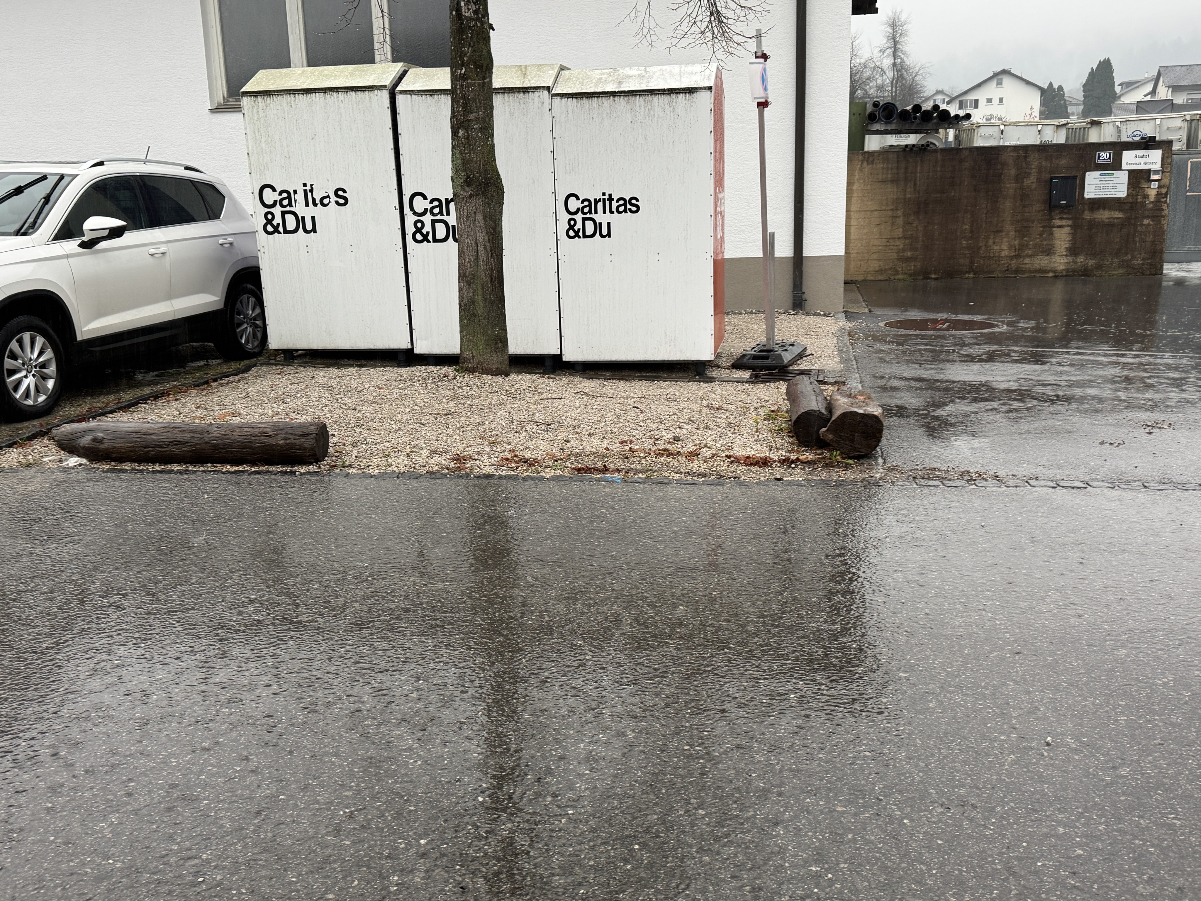 Am Tag darauf zeigt sich in Hörbranz: Die übrigen Rundhölzer liegen unberührt am Randbereich. Dass ausgerechnet dieser eine Stamm "zufällig" auf die Fahrbahn gerollt sein soll, erscheint mehr als unwahrscheinlich. Auch nach massivem Regen sind die Schleifspuren noch deutlich erkennbar – ein klares Indiz für eine bewusste Handlung.