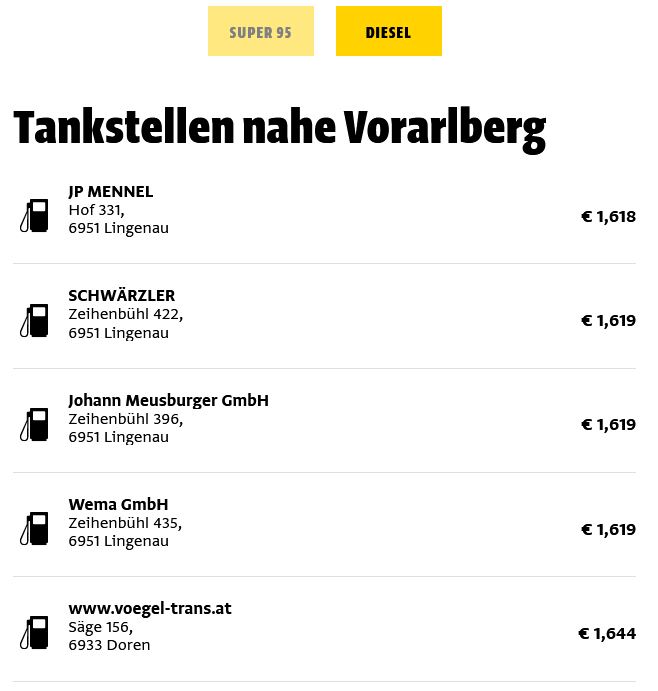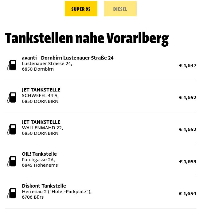Für einen Liter Diesel müssen in Vorarlberg derzeit rund 1,75 Euro berappt werden. Der Preis für Super-Benzin liegt derzeit bei etwa 1,72 Euro. Richtig teuer wird es für alle, die ihr Auto mit Super-Plus betanken, hier kratzt der Preis teilweise schon an der 2-Euro Marke.