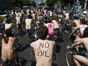 Splitternackt sind am Samstag hunderte Menschen durch das Zentrum von Madrid geradelt, um für mehr Sicherheit für Radfahrer im Straßenverkehr zu demonstrieren.