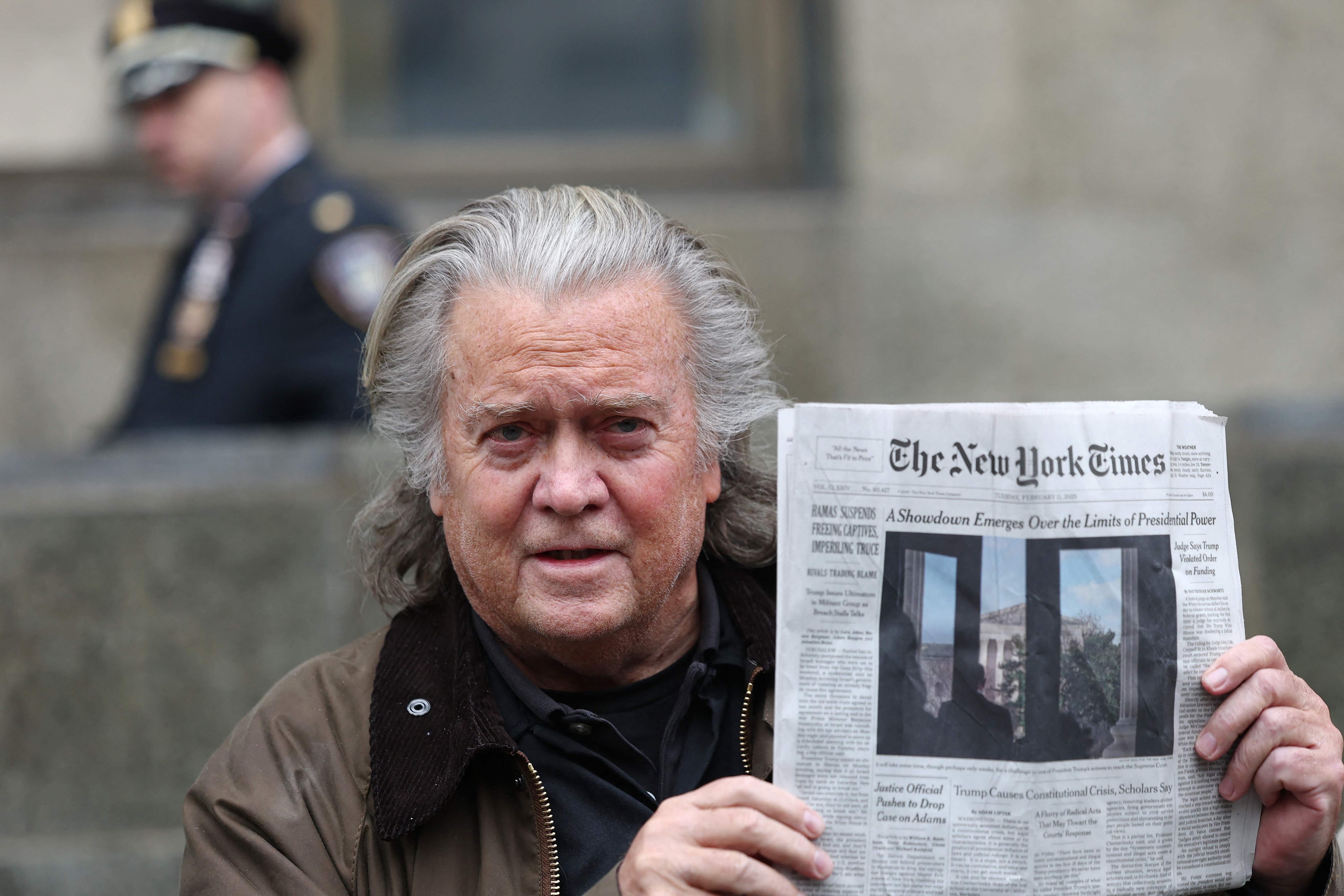 Steve Bannon stand im Februar 2025 vor dem Strafgericht in Manhattan, weil ihm in einem Betrugsfall vorgeworfen wurde, Spender beim Projekt "We Build the Wall" getäuscht zu haben. ©APA/AFP