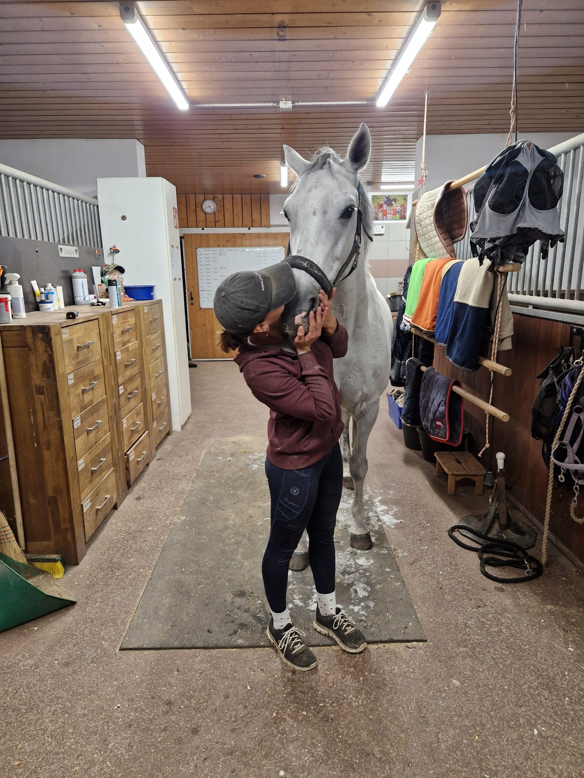 Im Gegenteil: "Ich habe mein Hobby zum Beruf gemacht, das ist ein unglaubliches Glück." Seit Jänner 2025 ist die Dornbirnerin als Pferdepflegerin für Springreiterin Katharina Rhomberg im Einsatz.