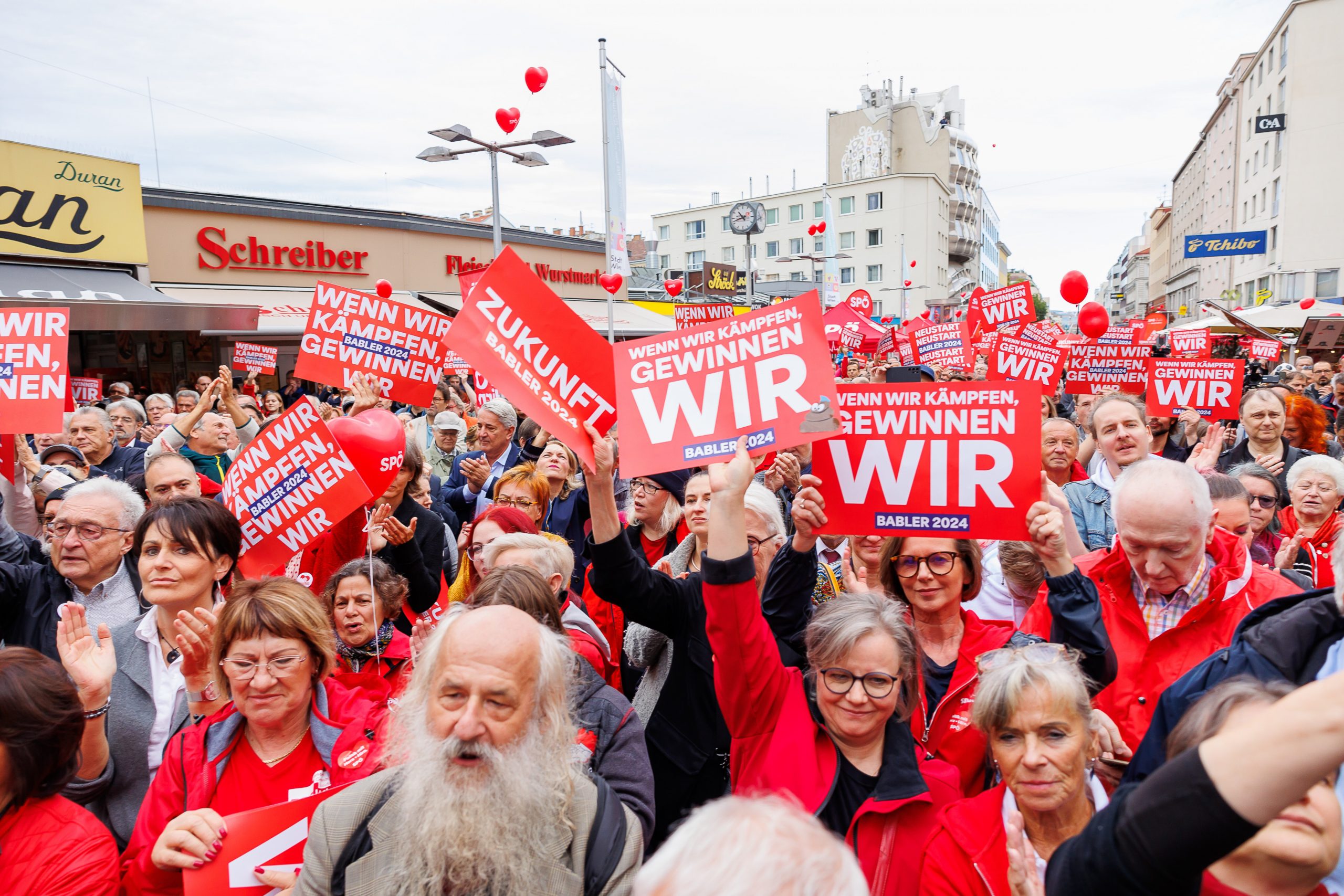 Beim Abschlussevent der SPÖ vor der Nationalratswahl rief Spitzenkandidat Andreas Babler am Samstag mehreren Hundert Interessierten zu, die sich am Viktor-Adler-Markt in Wien-Favoriten versammelt hatten. Babler befand, dass man aus eigenen Interessen niemals etwas anderes wählen sollte als die Sozialdemokratie.