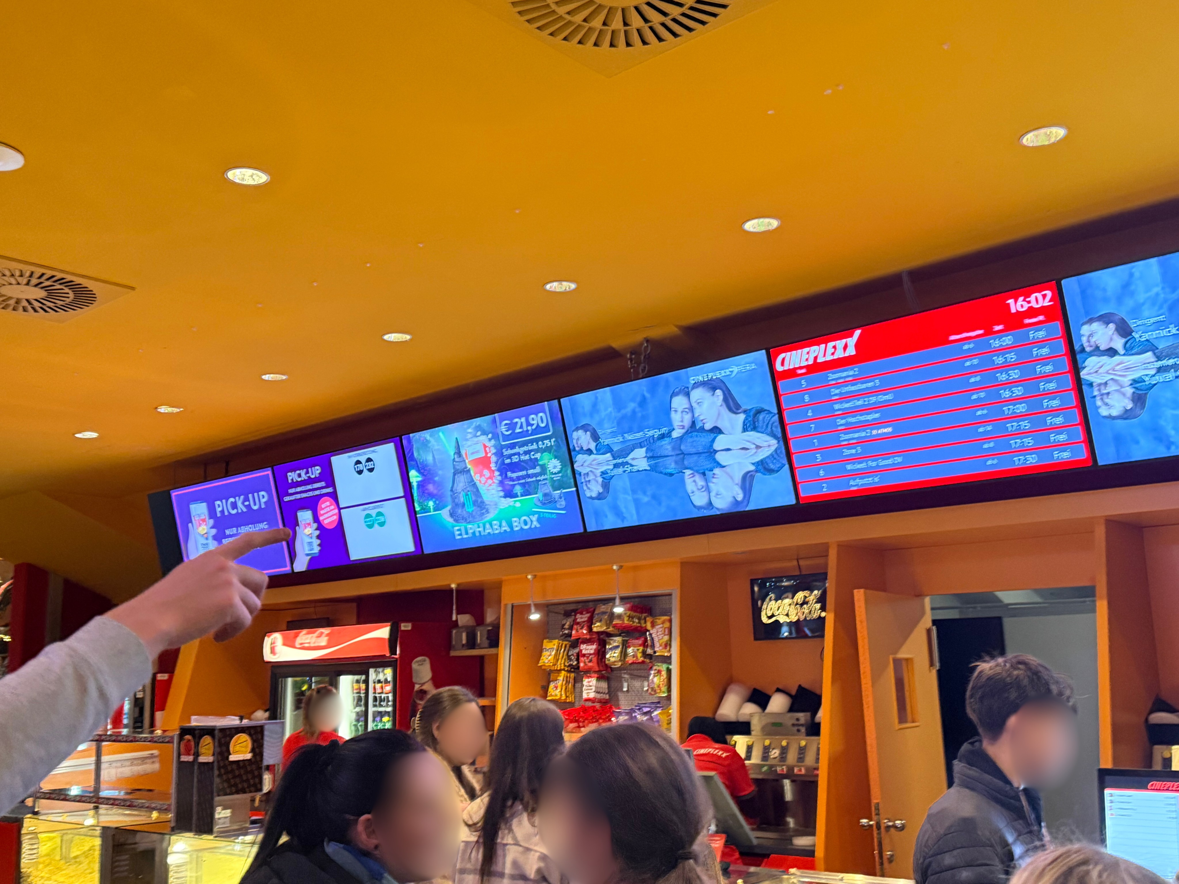 Ein Leser machte VOL.AT nach einem Kinobesuch in Hohenems auf folgende Situation aufmerksam: Die digitalen Screens im Gastronomiebereich zeigen laut ihm ausschließlich Menüangebote mit Preisangaben. Eine Preistafel mit Einzelpreisen war laut dem Bregenzer Familienvater im Trubel rund um die Gastro-Theke nicht zu entdecken.