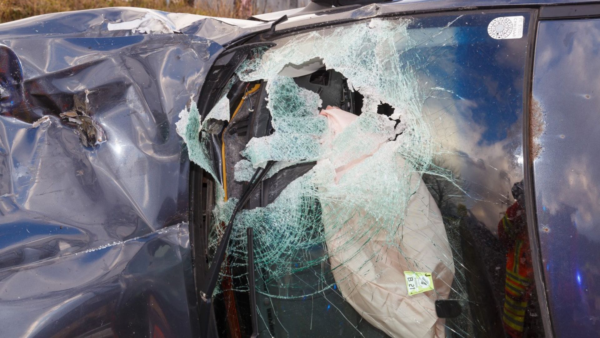 Der Pkw wurde im Zuge des Unfalls stark demoliert.
