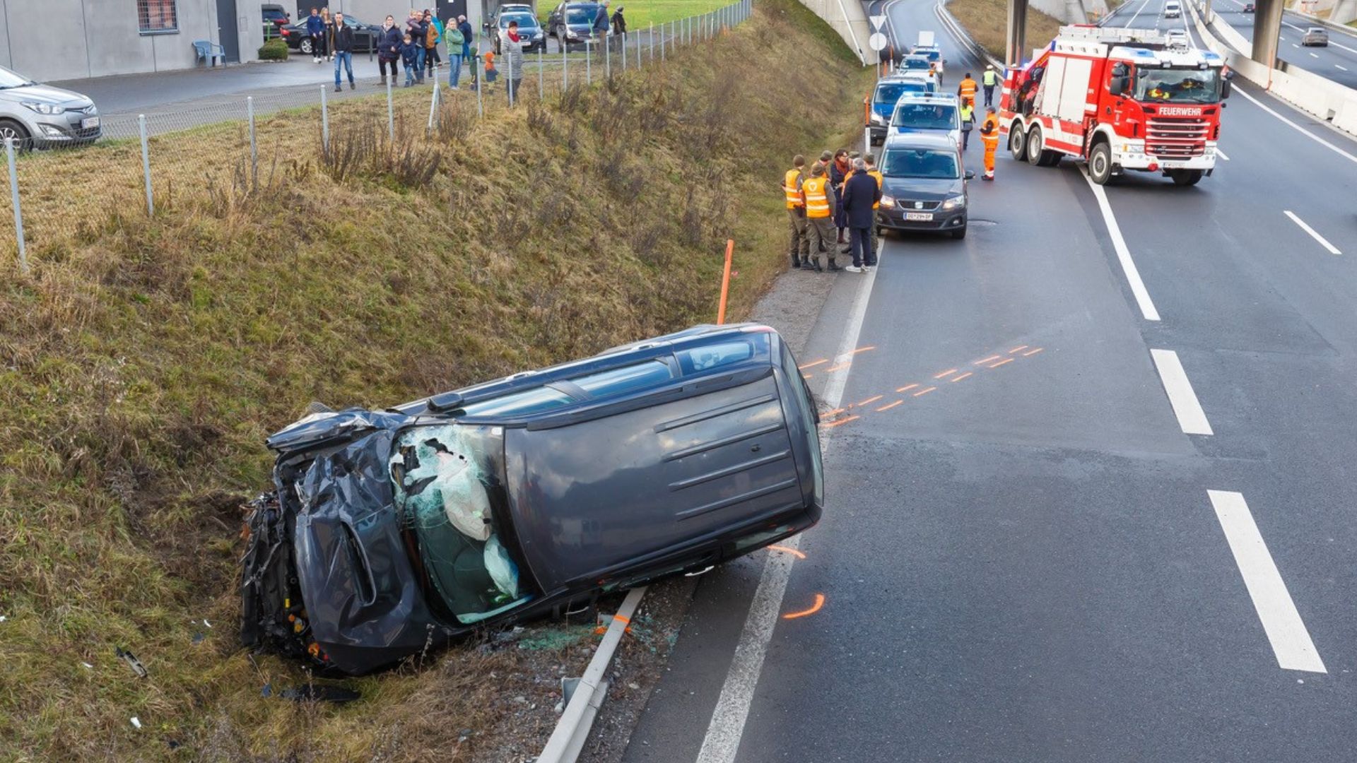 Die beiden Fahrzeuge waren kurz vor 15.30 Uhr auf der Walgauautobahn (A14) in Fahrtrichtung Deutschland unterwegs. Auf Höhe Bludenz-Bürs touchierte der auf der Überholspur fahrende Pkw-Lenker aus bislang unbekannter Ursache die Mittelleitschiene.