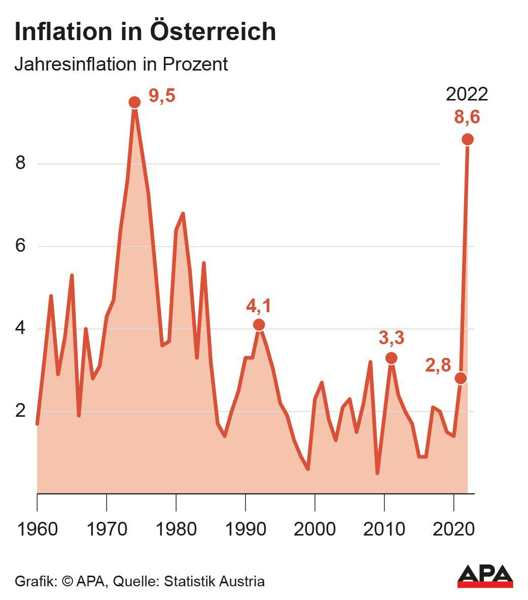 Inflation 2022 auf 8,6 Prozent gestiegen
