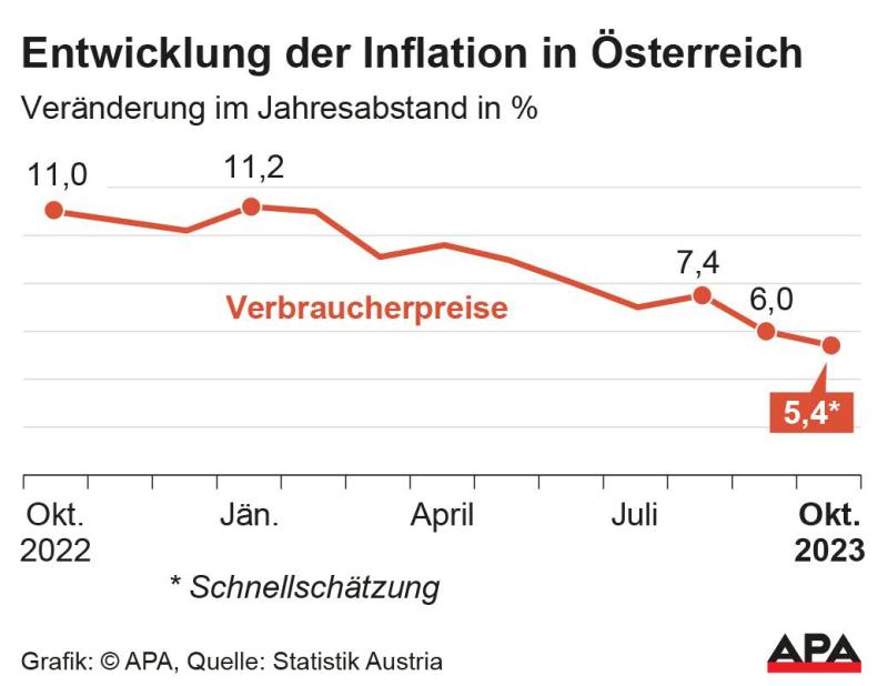 Die Inflation sank im Oktober 2023 auf 5,4 Prozent
