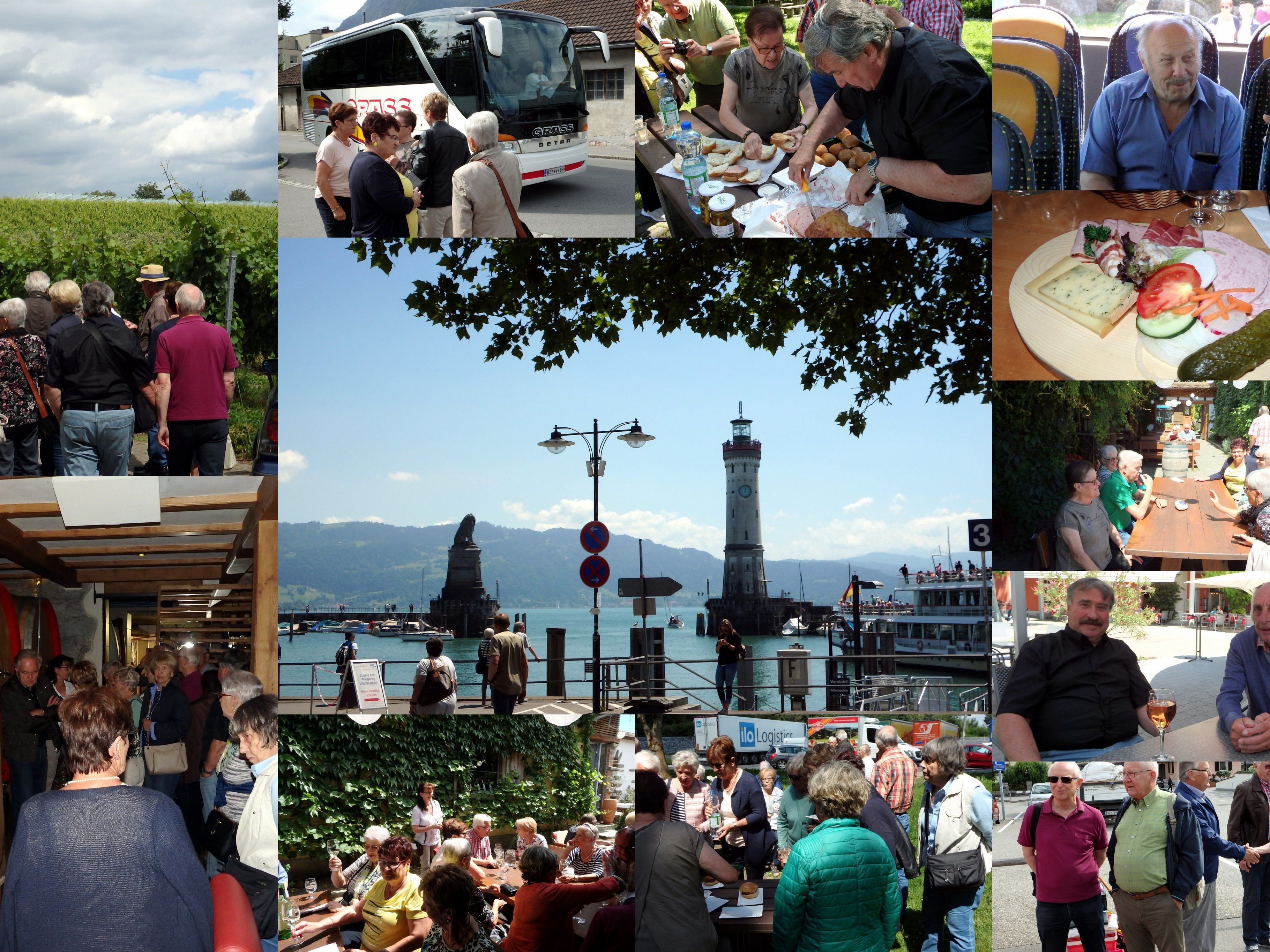 27 Jahrgängerinnen und Jahrgänger haben sich bei wunderschönem Wetter mit der Firma Graß auf den Weg gemacht. Kurz vor Lindau machten wir die erste Rast, um uns mit einer guten, kräftigen Leberkäs Jause für den Tag zu stärken. Dann ging es in die wunderschöne Bodenseestadt Lindau. Dort war genügend Zeit, um am Strand zu flanieren, in den Geschäften zu schmökern und in einem der Gaststätten und Cafés die Seele baumeln zu lassen. Höhepunkt war dann die Fahrt nach Nonnenhorn wo wir im Heurigenlokal „Zum Winzer“ der Familie Hornstein Einkehr hielten.