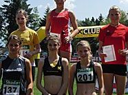 Gleich mit 2 Goldmedaillen durfte Belinda Pirker nach Hause gehen. Die Dornbiernerin holte sich den Speerwurftitel mit neuer persönlicher Bestleistung von 39,37 m und lief sensationell die 80 m Hürden in neuer Vorarlberger Bestleistung von 12,10 sec (alter Rekord: Mayr Beate 29.06.1991). Außerdem wurde sie im Kugelstoßen mit 11,05 m Vierte. Top auch Franziska Pohl. Die Gisingerin freute sich am Ende über eine Goldene, 3 Silberne Medaillen sowie über 2 neue persönliche Rekorde. Den Sieg holte sie sich im Hochsprung mit 1,61 m (Einstellung PB). 2 Ränge gab es für sie über 80 m Hürden (12,29 sec PB), im Weitsprung (5,47 m PB) und gemeinsam mit ihren Mannschaftskollegen Leonie Hartl, Natalie Pintaric und Melanie Knauder in der 4x100m Staffel. Maria Nussbaumer konnte über 300m und 1000 m überraschen. Mit 2 neuen persönlichen Bestleistungen lief die Götznerin über 1000 m auf den 2ten Platz und über 300 m auf den 3ten Platz. Die neunte Medaille bei den Mädchen gab es für Julia Knicht. Die Lustenauerin holte sich im Stabhochsprung mit 2,80 m die Bronzemedaille.