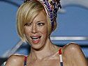 Für das Mode-Label “Heatherette”, für das im vergangenen Jahr schon Paris Hilton über den Laufsteg gestöckelt war, sollte sie auf dem Catwalk ein kurzes Röckchen vorführen. Dabei kam etwas zum Vorschein, das so wohl nicht geplant war: ihr blanker Hintern.