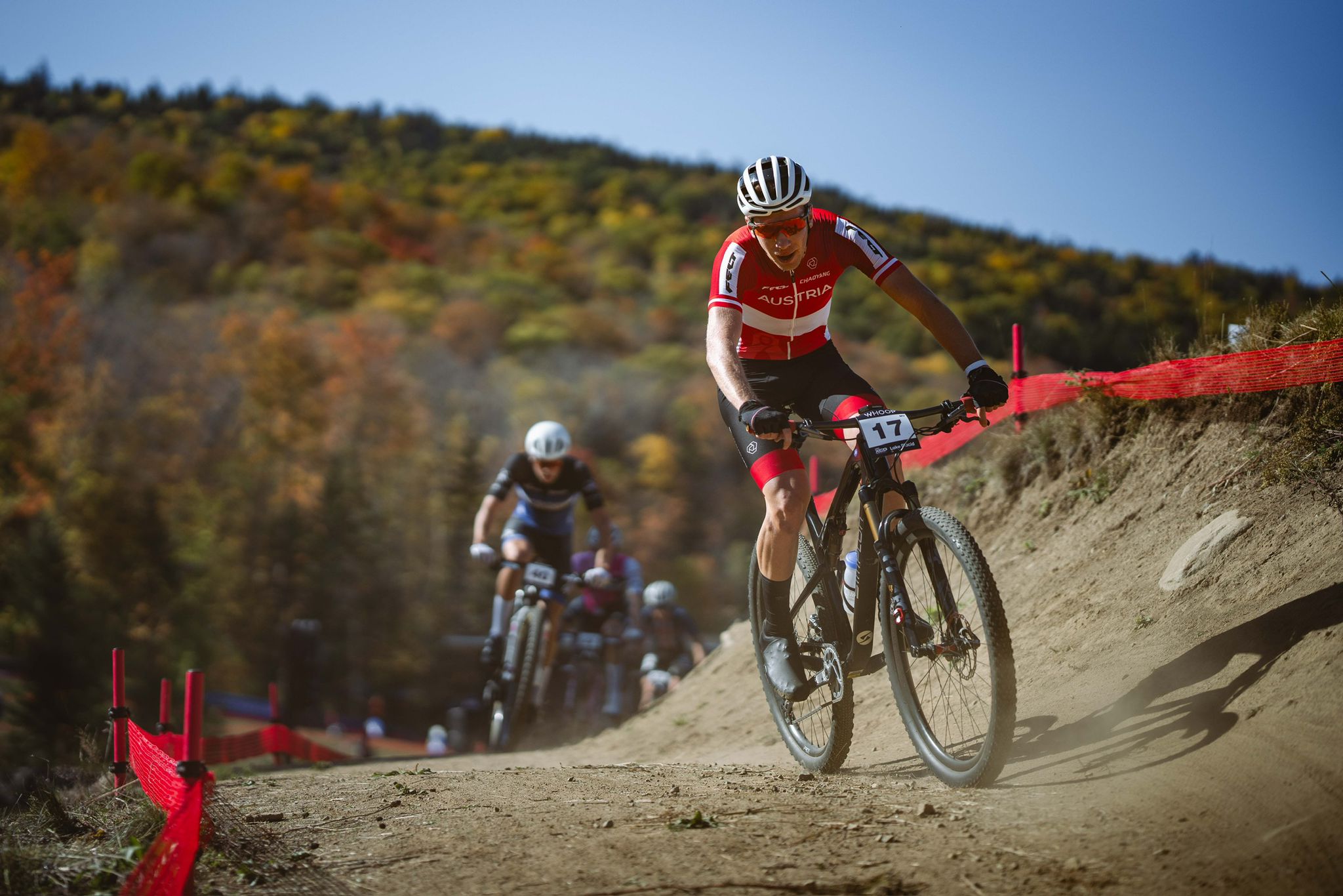 Nur zwei Tage später ging es weiter mit dem XCO-Rennen, dem klassischen olympischen Cross-Country. Von der ersten Startreihe aus kämpfte sich der Vorarlberger über die anspruchsvolle Strecke und blieb während des gesamten Rennens in den Top Ten.