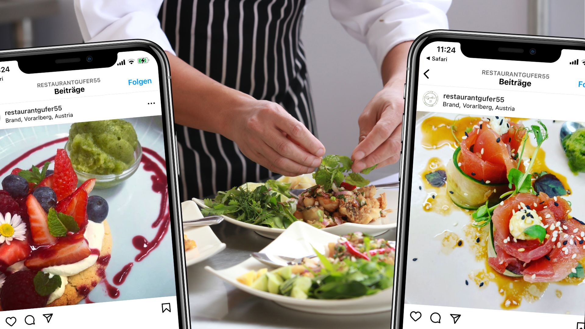 Das Café-Restaurant Gufer 55 in Brand wartet mit einer Vielfalt an Hauptgerichten und süßen Dessertfreuden auf. Ob Fleisch, Fisch oder Veggie - vom klassischen Wiener Schnitzel über Saiblingsfilet und Paprikarisotto mit gegrillten Riesengarnelen bis hin zu Ziegenfrischkäse im Filoteig ist alles dabei. Auch Süßes, wie Schokoküchlein mit flüssigem Kern, marinierten Erdbeeren und Erdbeersorbet oder Mohnnudeln mit Himbeeren und Sauerrahmeis, steht auf der Speisekarte. Das Lokal arbeitet mit verschiedenen heimischen Zulieferern, darunter mehrere Bauernhöfe, Vorarlberg Milch und Alpe Rona, zusammen. Außerdem wird das Brot des Hauses selbst gebacken.