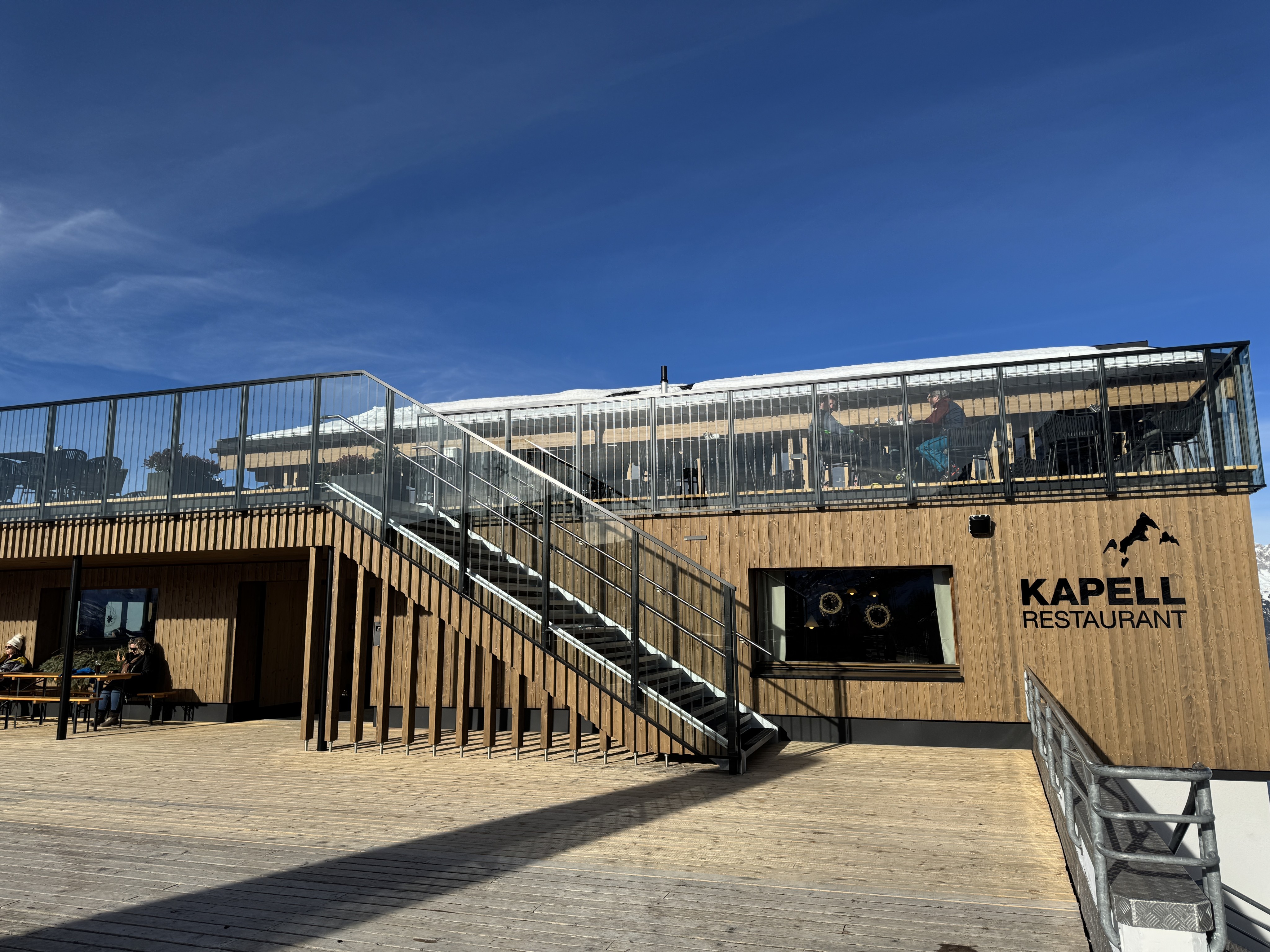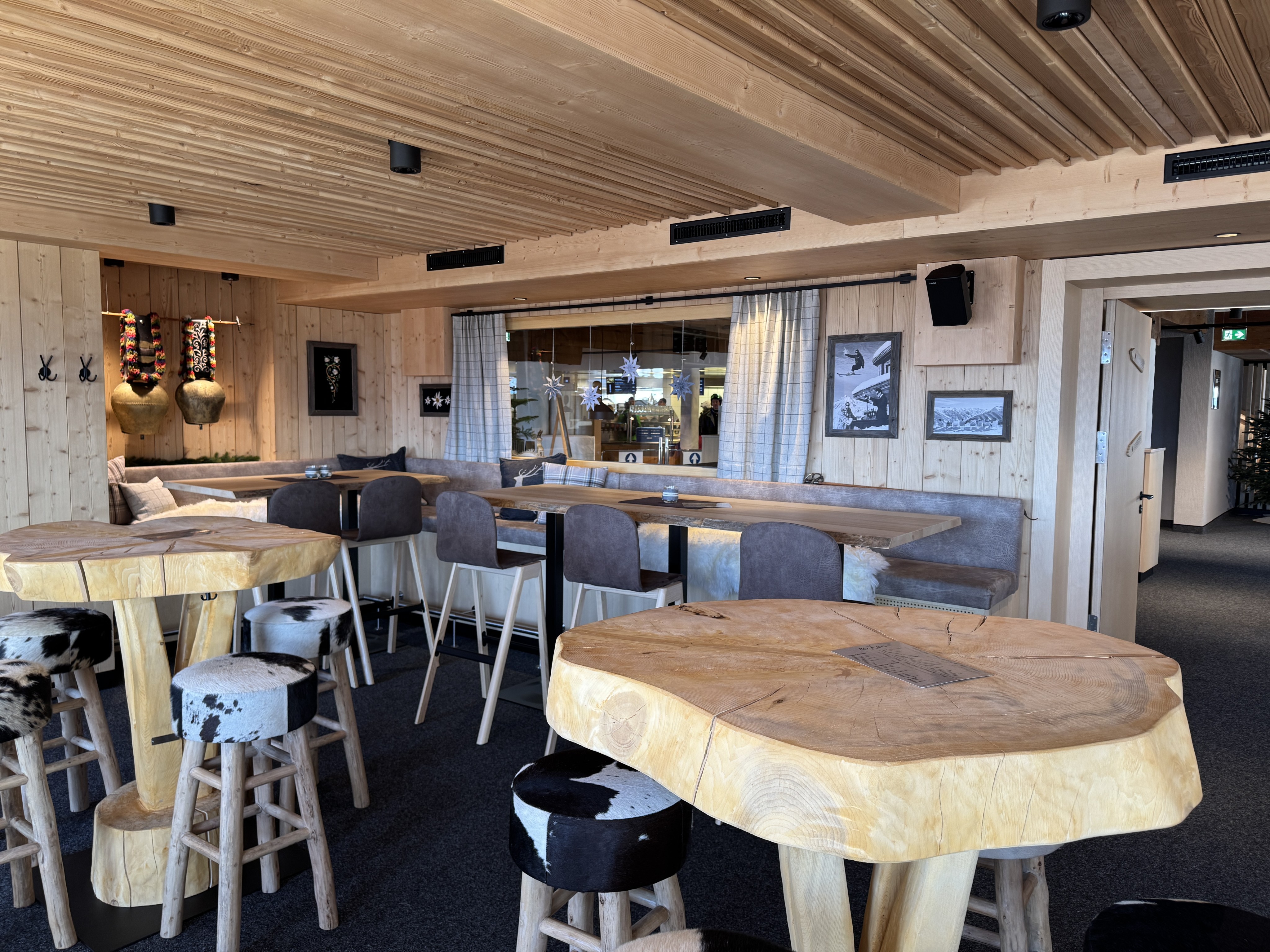 Das neue Bergrestaurant ist geteilt in 4 Bereiche: das Selbstbedienungsrestaurant, die neu errichtete Skibar, die Rotisserie als Bedienrestaurant im oberen Stock und die Hanglage, die Weinbar im oberen Geschoss. Nachdem die Skifahrer zuvor ausschließlich bei schönem Wetter an der Außenbar sitzen konnten, ist nun die Skibar eine echte Schlechtwetteralternative.