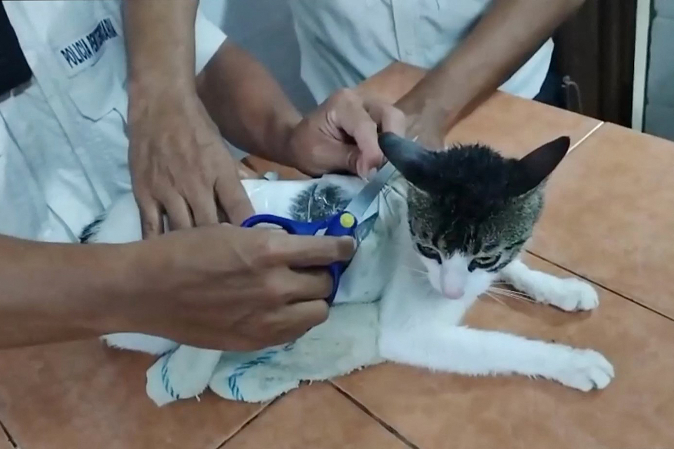 Auf einem vom Ministerium veröffentlichten Video ist zu sehen, wie ein Gefängniswärter über einen Zaun klettert, um die Katze einzufangen. Später ist das Tier auf einem Gefängnistisch liegend zu sehen, während die Wärter die Pakete von seinem winzigen Körper abschneiden. Die Katze wurde demnach anschließend an einen Tierschutzverein übergeben.