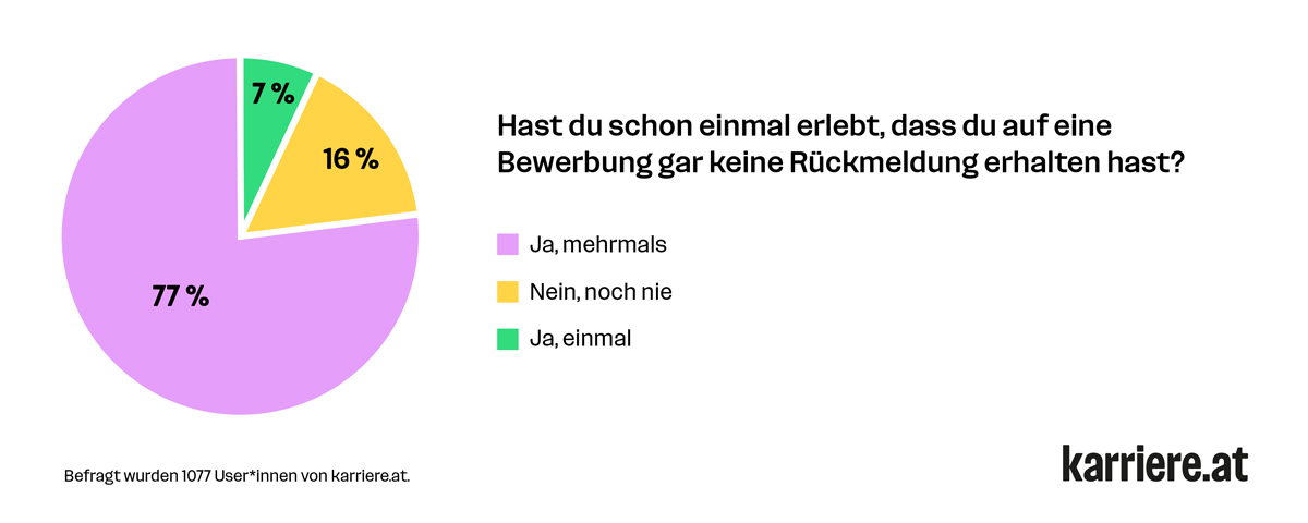 Sieben Prozent mussten damit nur ein Mal zurechtkommen - aber 77 Prozent gleich mehrmals. 16 Prozent blieb diese Erfahrung erspart. "Ich empfehle Jobsuchenden dranzubleiben und das Ausbleiben einer Rückmeldung nicht persönlich zu nehmen. Häufen sich die Absagen, kann es sinnvoll sein, die eigenen Bewerbungsunterlagen einem Qualitäts- Check zu unterziehen", erklärte Georg Konjovic, CEO bei karriere.at, in einer Aussendung vom Montag. Insgesamt nahmen 1.077 karriere.at-User an der Umfrage teil.