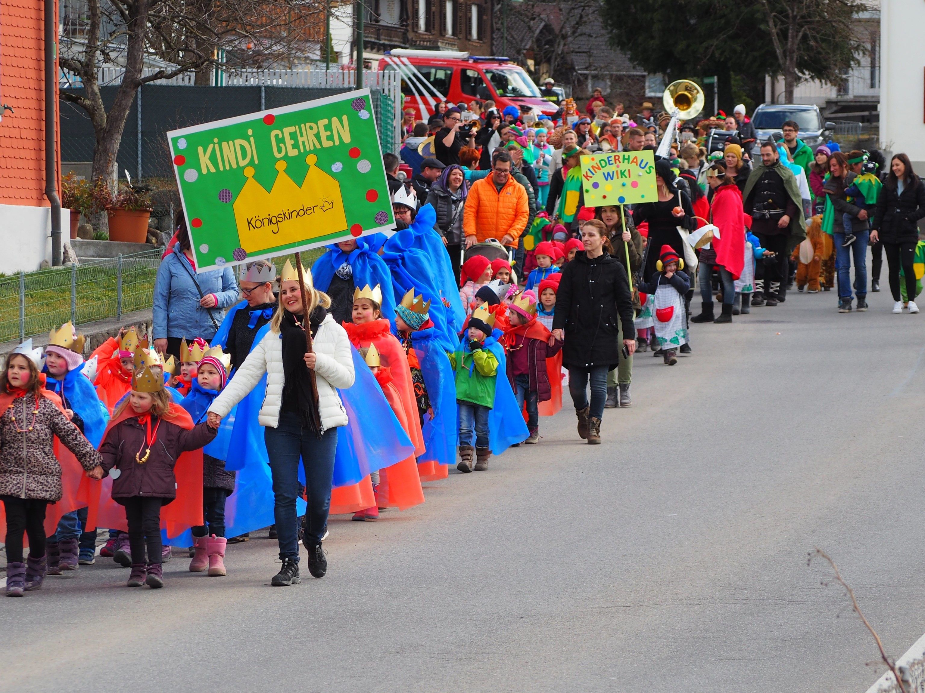 Weiler. Wohl einen der kleinsten Faschingsumzüge des Landes gab es in Weiler. Neben der Guggamusik der Harmoniemusik standen ganz klar die zahlreichen Kinder der Gemeinde aus Kindergärten und Volksschule im Mittelpunkt. Vom Musighüsle ging es ins Dorfzentrum und – nach einer kleinen Runde am Platz eine wohlverdiente Stärkung für alle Mäschgerle in Form von Limonade und heißen Würstle. Zusammen mit ihren Familien genossen dann alle das Faschingskonzert der bestens aufgelegten Guggamusik. CEG