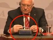 Vaclav Klaus klaut Kugelschreiber
