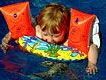 An das Alter des Kindes angepasste Schwimmflügel mit Sicherheitsventilen sind die einzig wahre Schwimmhilfe. Luftmatratzen, Autoreifen oder aufblasbare Gummitiere sind keine Schwimmhilfen. Das Kind kann heraus- oder abrutschen. Rechnen Sie auch nie damit, dass Kinder in gefährlichen Situationen schwimmen. Lassen Sie Kinder so früh wie möglich schwimmen lernen und legen Sie ihnen auf Booten Schwimmwesten an.