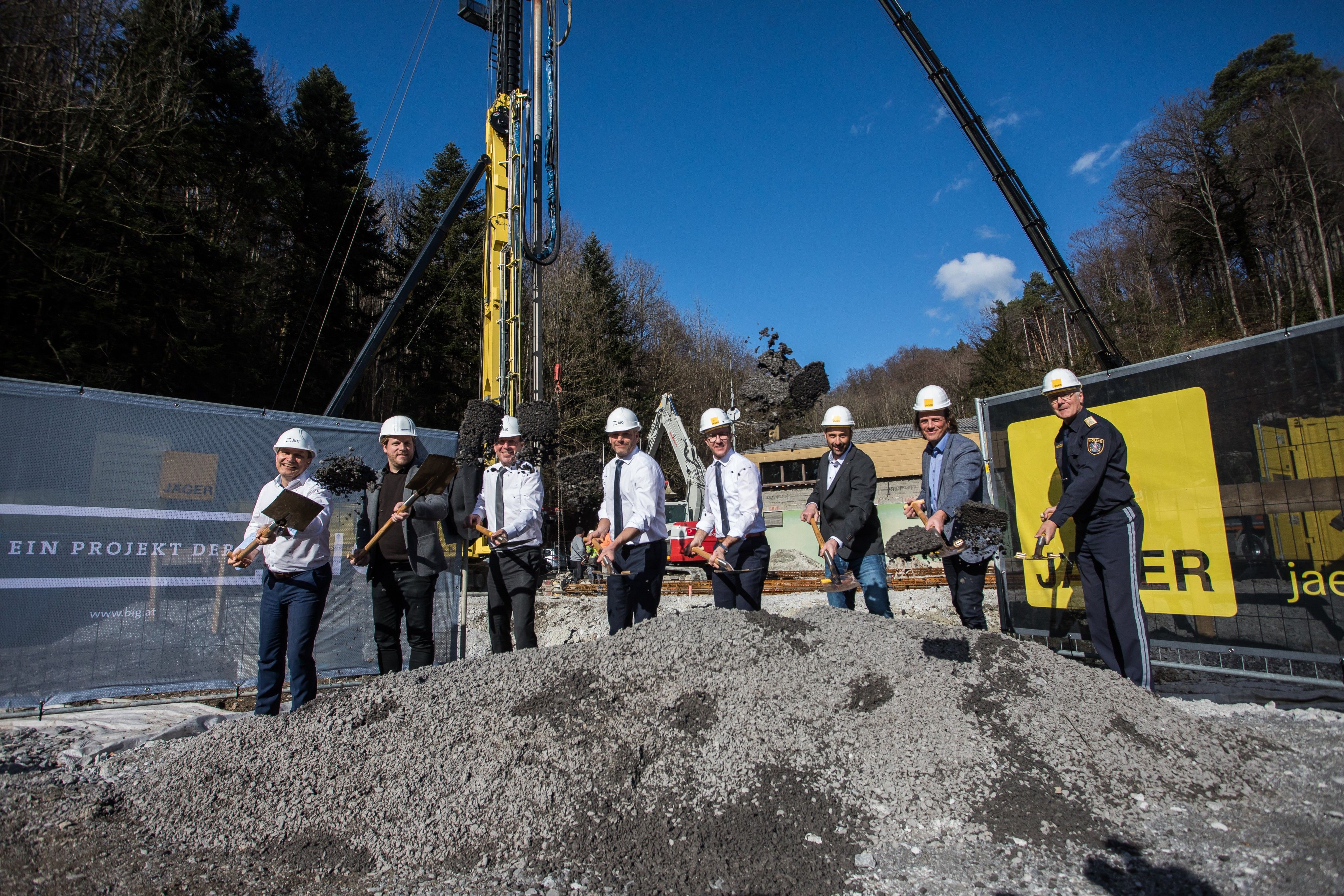 Für rund vier Mio. Euro errichtet die Bundesimmobiliengesellschaft (BIG) am Standort des bestehenden Polizeischießstands ein neues Einsatztrainingszentrum in Koblach. Auftraggeber ist das Bundesministerium für Inneres. Beim Start der Bauarbeiten waren unter anderem Innenminister Karl Nehammer und Sicherheitslandesrat Gantner vor Ort.