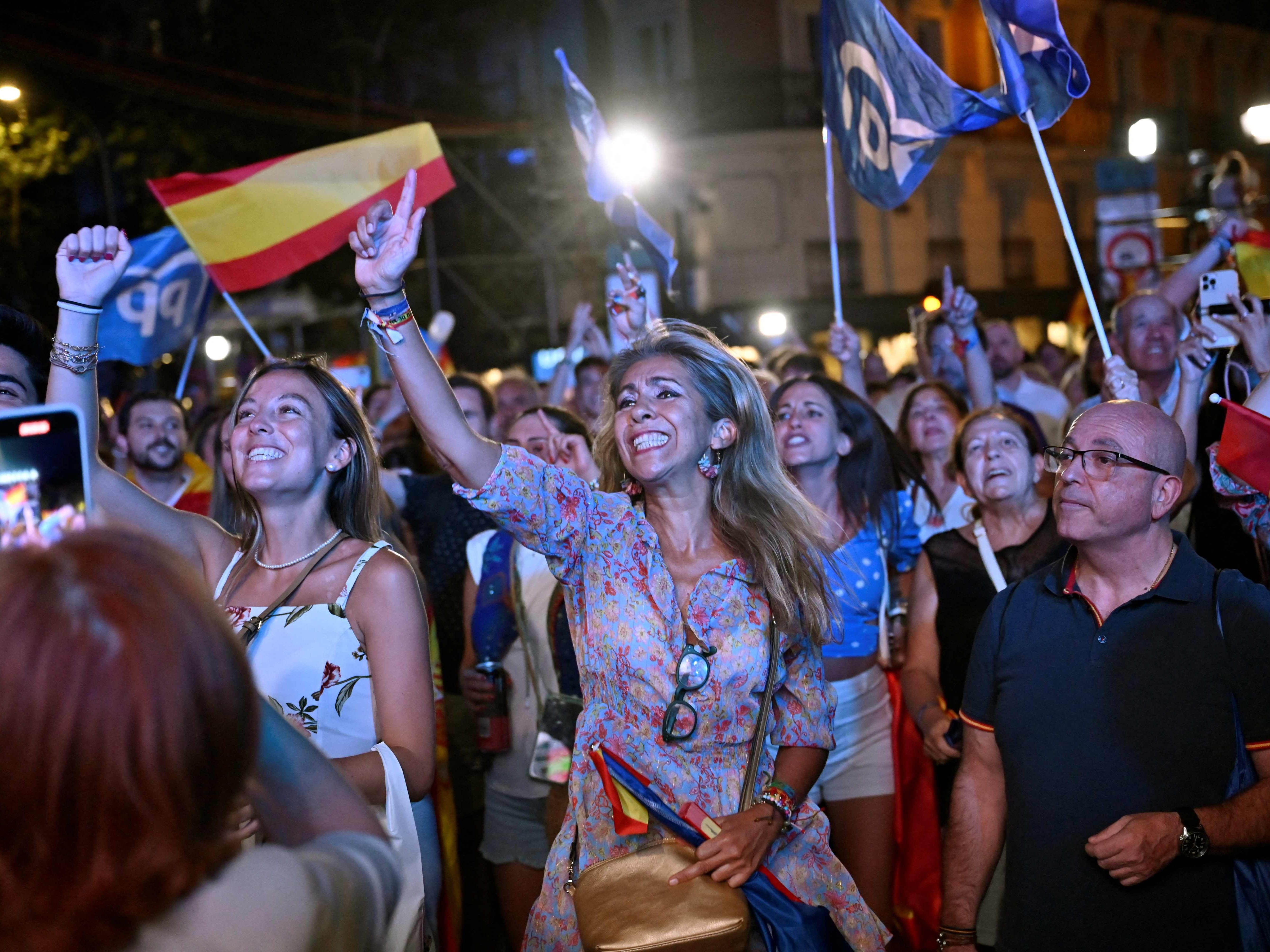 Madrid. Hochrechnungen zufolge, die auf Auszählung von gut 83 Prozent der Stimmen basierten, kann die PP auf 135 Sitze im Parlament in Madrid hoffen. Vox musste zwar Verluste hinnehmen und kam nur noch auf 33 Sitze, dürfte ihren politischen Einfluss paradoxerweise aber erheblich ausbauen. Ob die beiden Parteien aber zusammen die absolute Mehrheit von 176 Sitzen erreichen würden, war am Wahlabend zunächst fraglich. Die PSOE kam mit 123 Sitzen nur noch auf Platz zwei. Ihr linkerer Partner, das neugegründete Wahlbündnis Sumar, kam mit 31 Sitzen auf Platz vier.