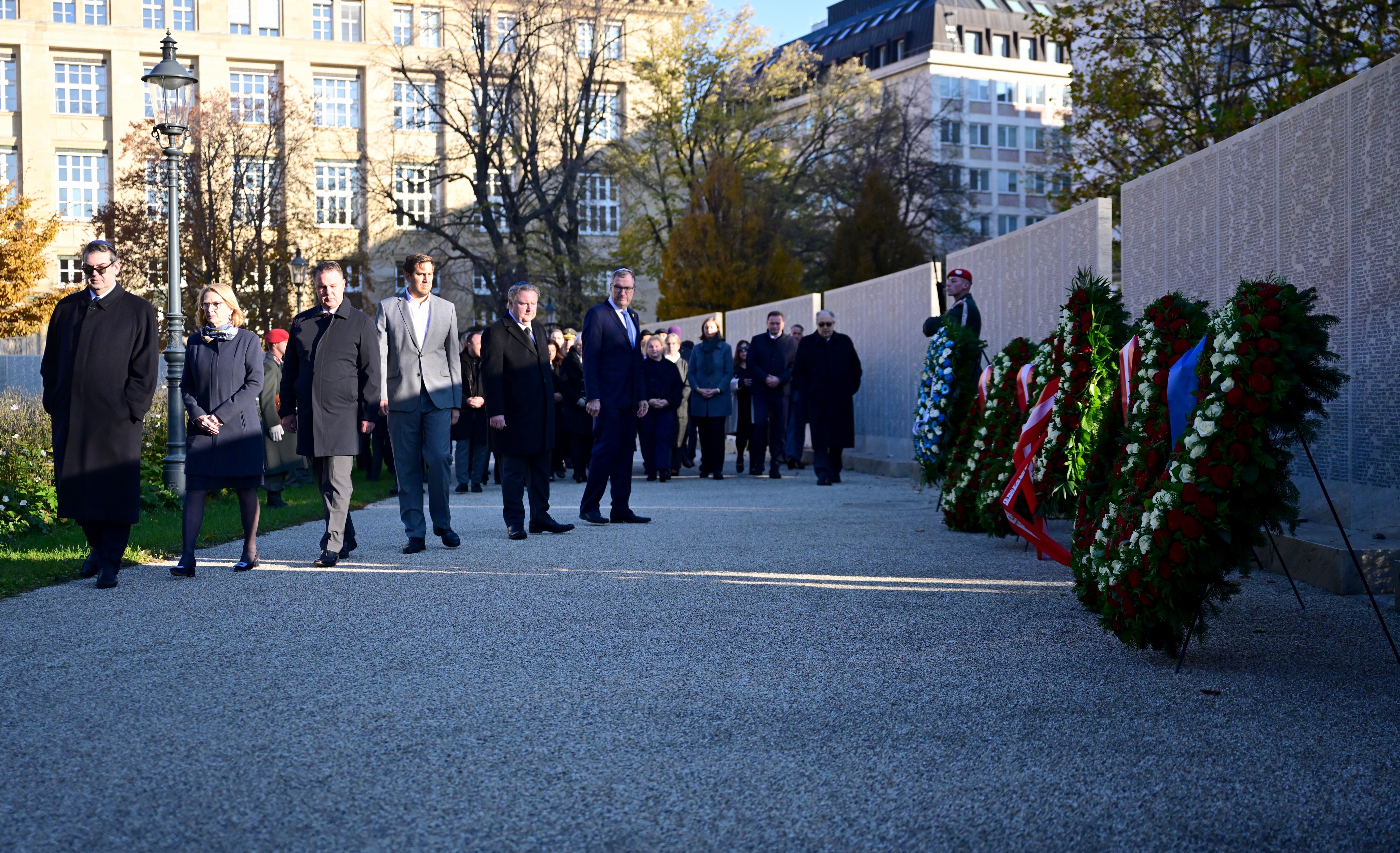 Das offizielle Österreich hat am Freitag der Opfer der Novemberpogrome gegen die jüdische Gemeinde vor 87 Jahren gedacht. Mehrere Regierungsmitglieder erinnerten bei einer Kranzniederlegung an der Shoah-Namensmauer im Wiener Ostarrichipark an die Pogrome. Der Präsident der Israelitischen Kultusgemeinde (IKG), Oskar Deutsch, warnte im Anschluss vor Medienvertretern vor einem "Tsunami" an antisemitischen Übergriffen auf der ganzen Welt.