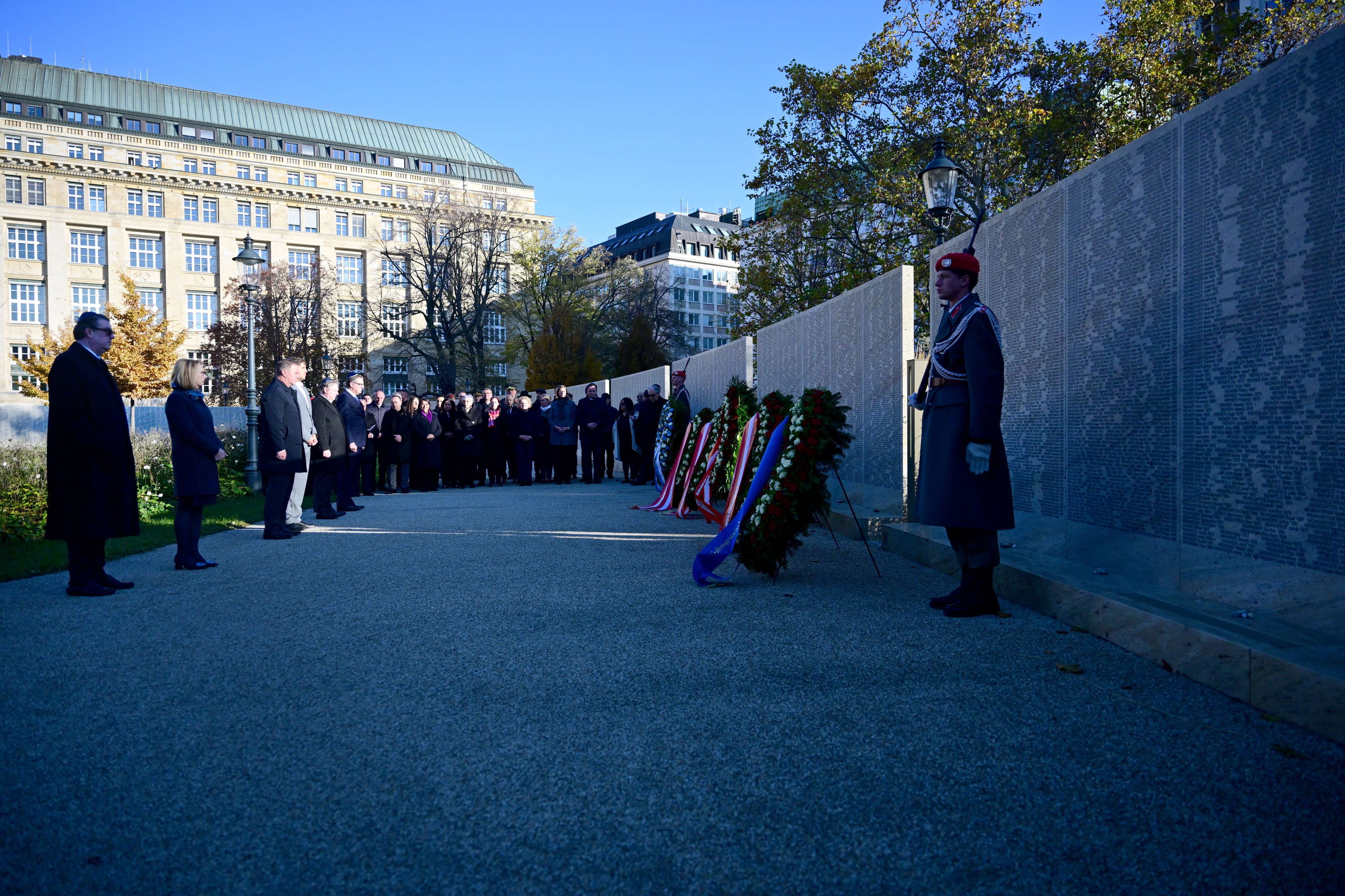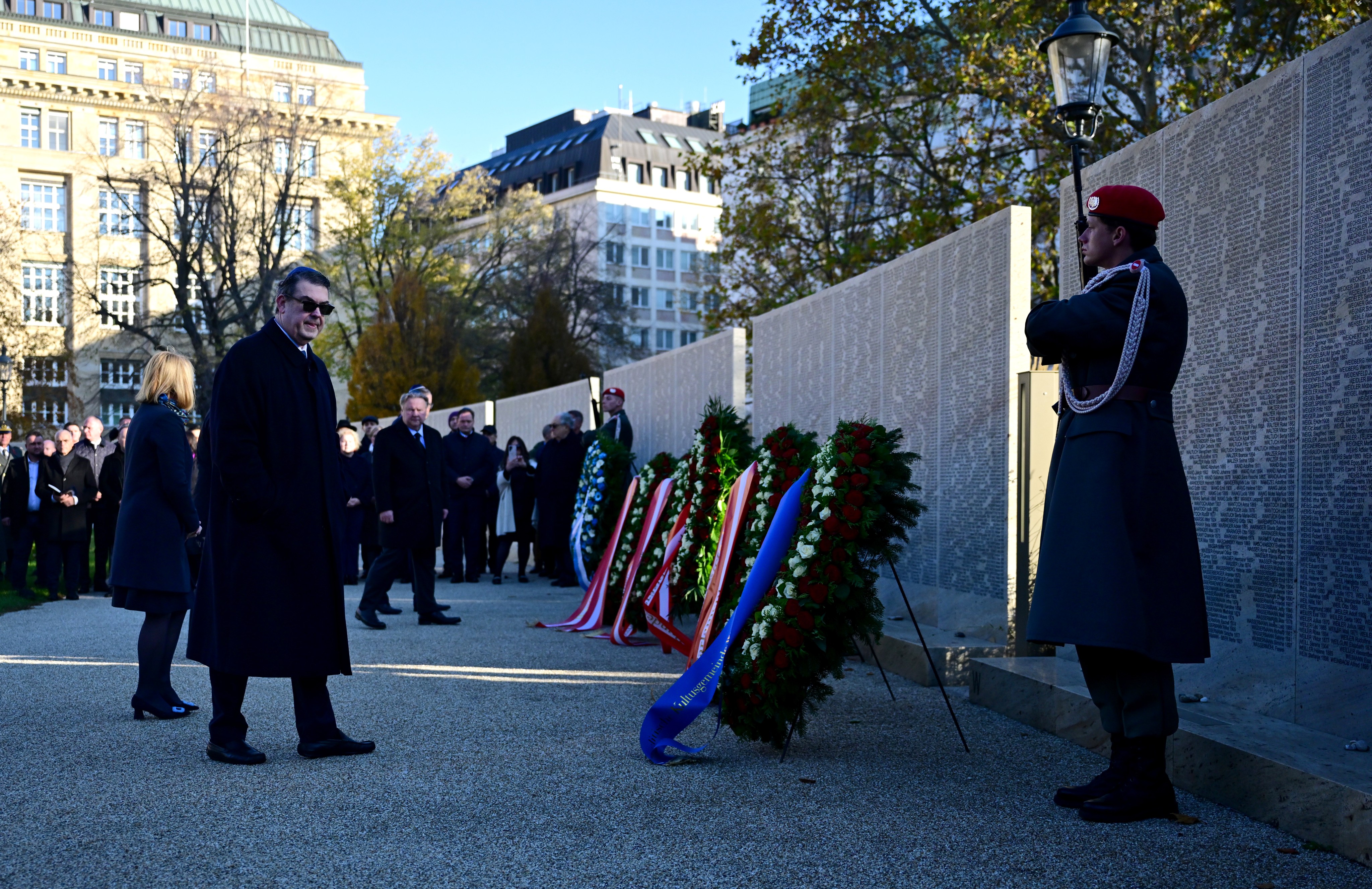 Bei der Gedenkfeier Freitagfrüh war ein großer Teil der Bundesregierung, angefangen bei Vizekanzler Andreas Babler (SPÖ) und dem für Antisemitismus zuständigen Staatssekretär Alexander Pröll (ÖVP), anwesend. Bundeskanzler Christian Stocker (ÖVP) verrichtet seine Amtsgeschäfte nach einer Operation weiter von zuhause aus. Auch der Wiener Bürgermeister Michael Ludwig (SPÖ) und die Klubobleute von NEOS und Grünen, Yannick Shetty und Leonore Gewessler, waren vor Ort - nicht jedoch Nationalratspräsident Walter Rosenkranz (FPÖ). Die IKG verwehrt seit seinem Amtsantritt Gespräche mit Rosenkranz und der FPÖ, sie verweist dabei auf zahlreiche antisemitische Vorfälle innerhalb der Partei. An seine Stelle trat die dritte Nationalratspräsidentin Doris Bures (SPÖ).