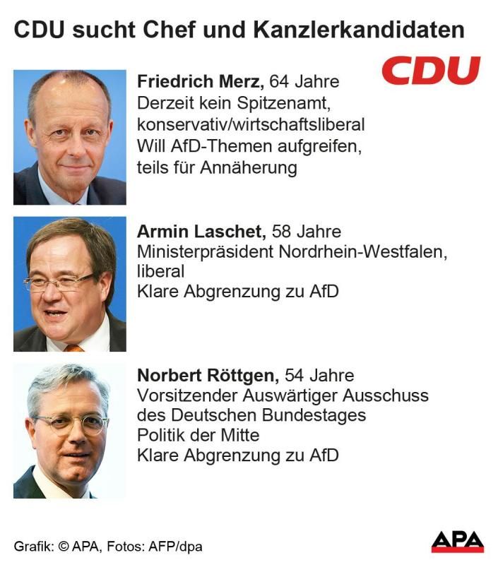 Zuvor hatte bereits vergangene Woche CDU-Außenpolitiker Norbert Röttgen seine Kandidatur bekanntgegeben. Die bisherige CDU-Chefin Annegret Kramp-Karrenbauer hatte am Montag angekündigt, dass sich mögliche Kandidaten noch in dieser Woche erklären wollen. Gewählt wird die neue Parteispitze auf einem Sonderparteitag am 25. April in Berlin.