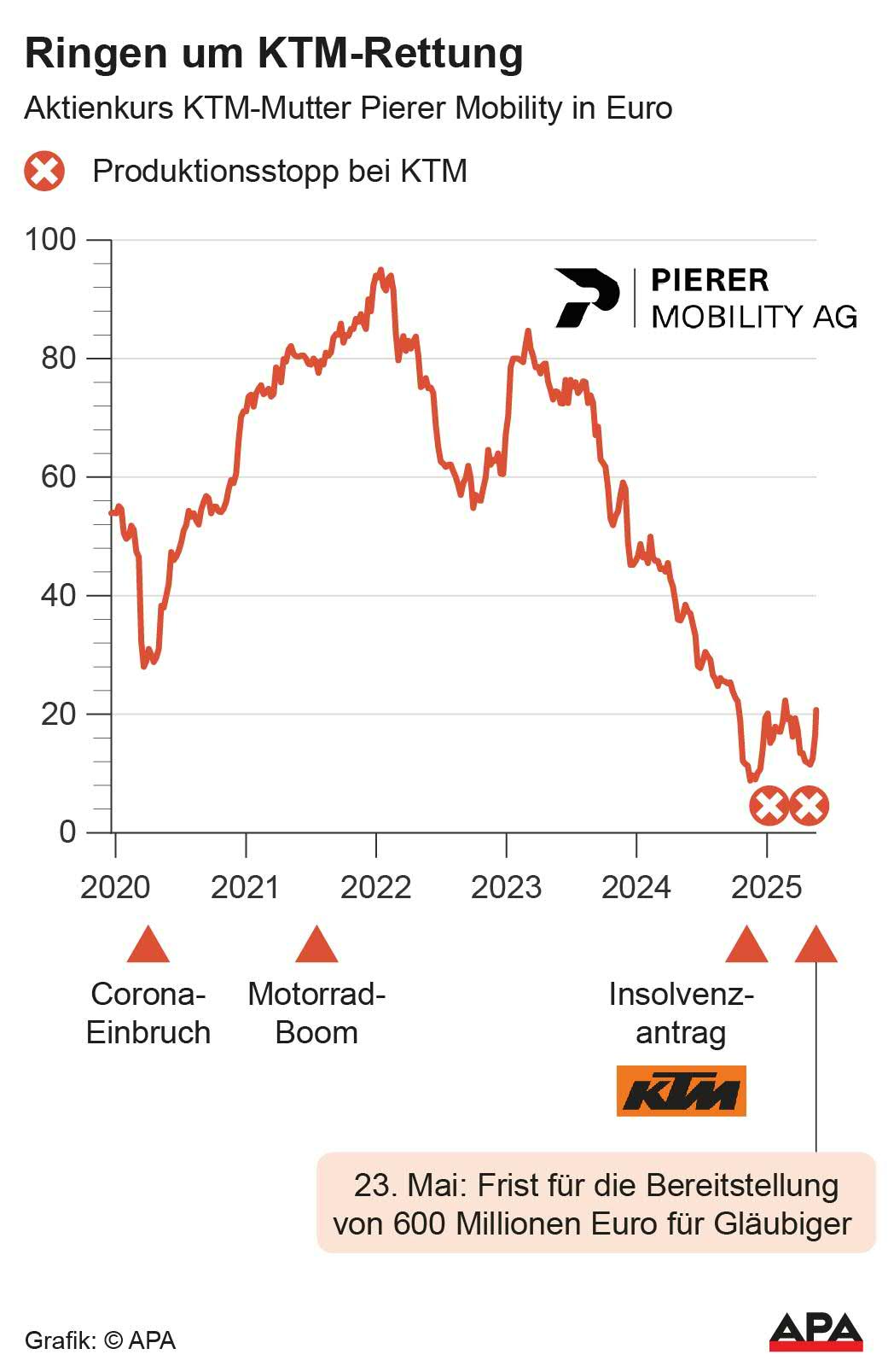 Ende November 2024 war KTM insolvent geworden und hatte ein Sanierungsverfahren mit Eigenverwaltung beantragt. 1.200 Gläubiger meldeten Forderungen in der Höhe von rund 2,2 Mrd. Euro an. Am 25. Februar nahmen die Gläubiger im Landesgericht Ried im Innkreis mehrheitlich den Sanierungsplan an. Dieser sieht eine Barquote von 30 Prozent vor. Langt das Geld bis 23. Mai nicht bei Sanierungsverwalter Peter Vogl ein, würde dies das Ende des Sanierungs- sowie die Eröffnung eines Konkursverfahrens bedeuten.
