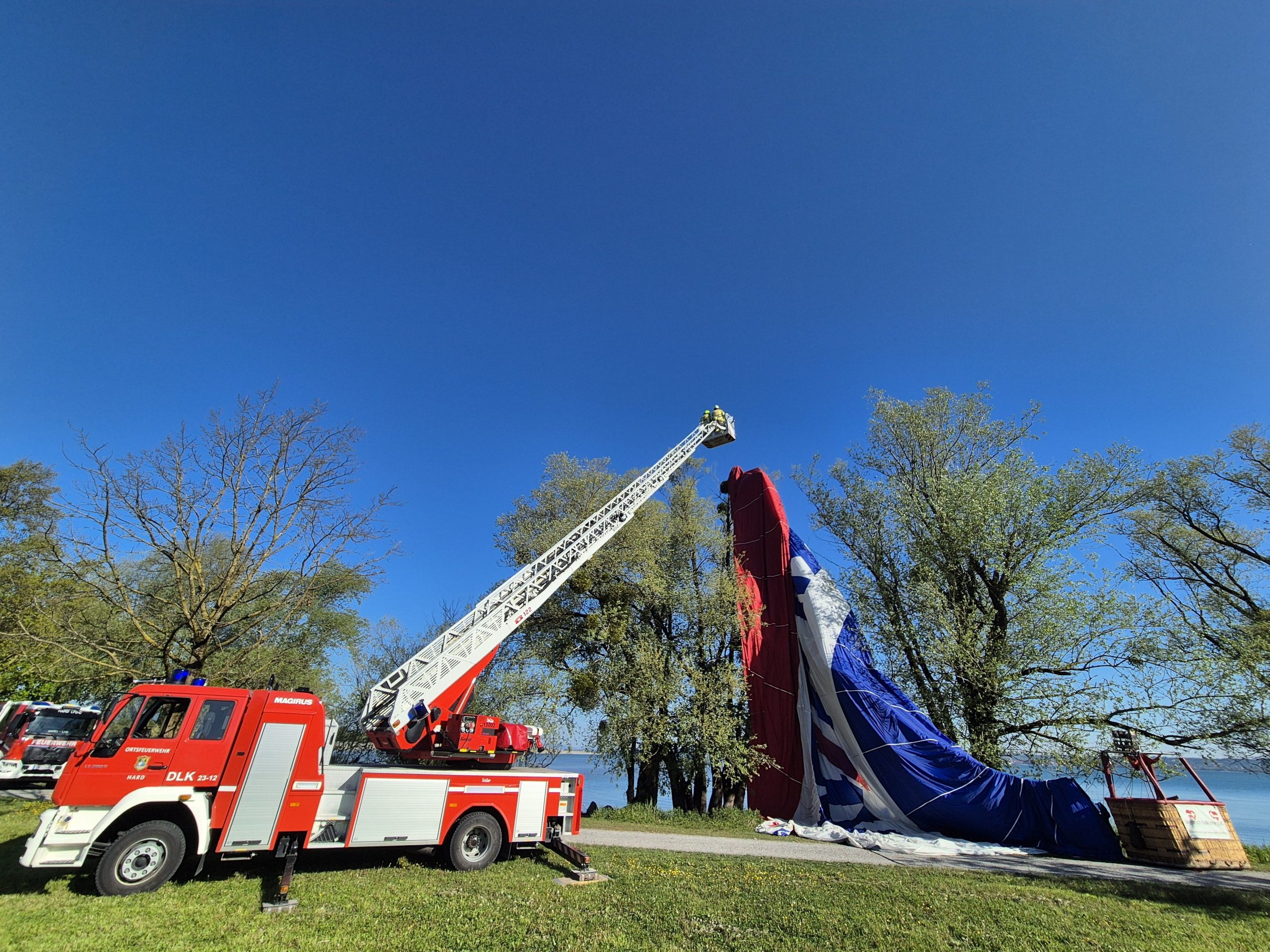 Kurioser Einsatz für die Feuerwehr Hard: Heißluftballon in Baum verfangen