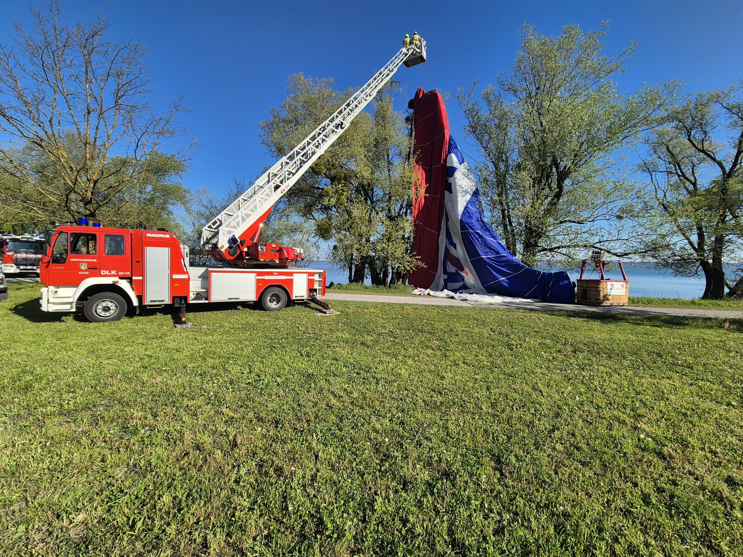 Gegen 8.25 Uhr setzte der 70-jährige Pilot den Ballon rund 50 Meter vom Ufer entfernt auf einer Wiese auf. Während sich der Korb bereits am Boden befand, erfasste eine starke Windböe den Ballon und schleifte den Korb etwa 40 Meter in Richtung See. Dabei verfing sich die Ballonhülle in einer Baumgruppe am Ufer.