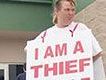 Wer im Wal-Mart stiehlt hat die Wahl: 60 Tage Gefängnis oder an zwei aufeinander folgenden Wochenenden für vier Stunden vor dem Geschäft Buße tun. Behängt mit einem Schild, auf dem die begangene Tat protokolliert wird. “Ich will niemanden bestrafen. Ich will niemanden bloß stellen. Ich halte mich nur an die Anordnung des Richters”, beruhigt Wal-Mart-Manager Neil Hawkings sein Gewissen. “Aber ich denke, es wird eine abschreckende Wirkung haben, vor allem für die Jugend.” Viele würden es sich in Zukunft zwei Mal überlegen, ob sie stehlen, glaubt der Geschäftsführer.