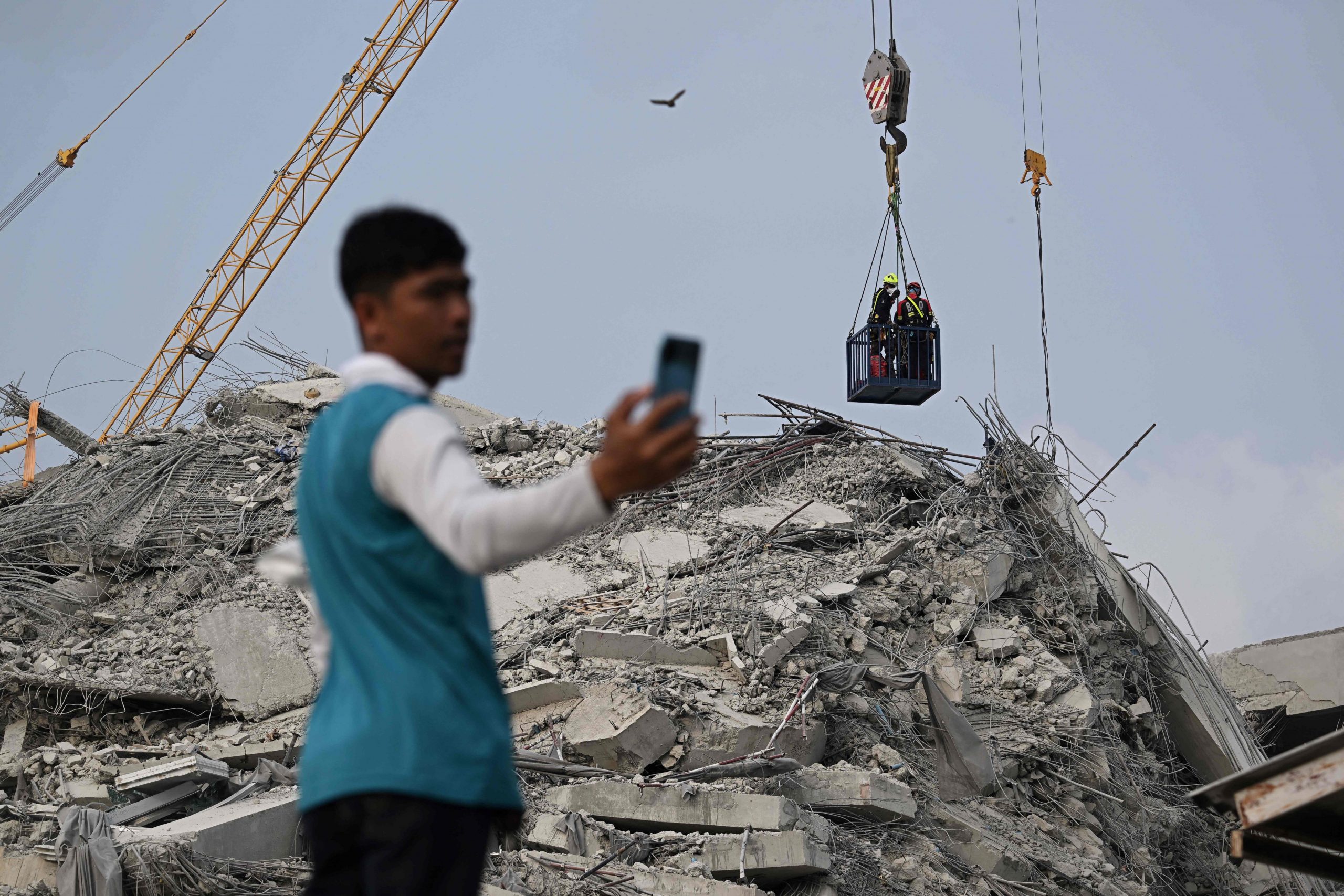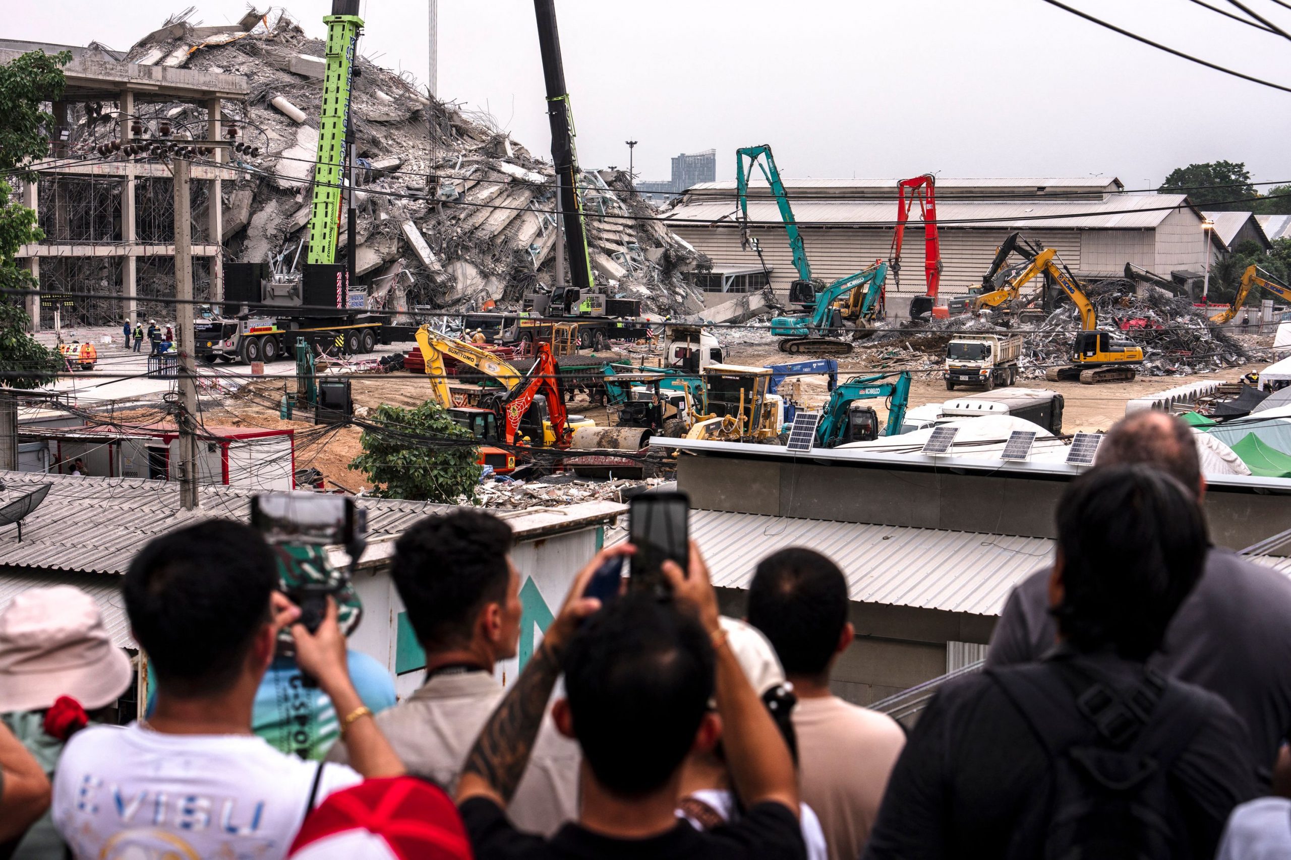 Im benachbarten Thailand gehen inzwischen die Sucharbeiten an einem eingestürzten Hochhaus-Rohbau weiter. Das Beben war auch in Bangkok deutlich zu spüren und beschädigte viele Gebäude, die überprüft werden müssen. Unter den Trümmern des 30-stöckigen Rohbaus seien fünf weitere Leichen entdeckt worden, die jedoch bisher nicht geborgen werden konnten, zitierte der Sender ThaiPBS World die Einsatzkräfte.