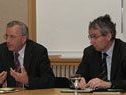 Bregenz - Die Kapitalzufuhr durch die Banken in Vorarlberg funktioniert, eine Kreditklemme für Unternehmen oder private Bankkunden im Land besteht nicht. Es soll gemeinsam gegen Härtefälle vorgegangen werden, so LH Sausgruber und LR Rüdisser. LH Herbert Sausgruber, Jodok Simma