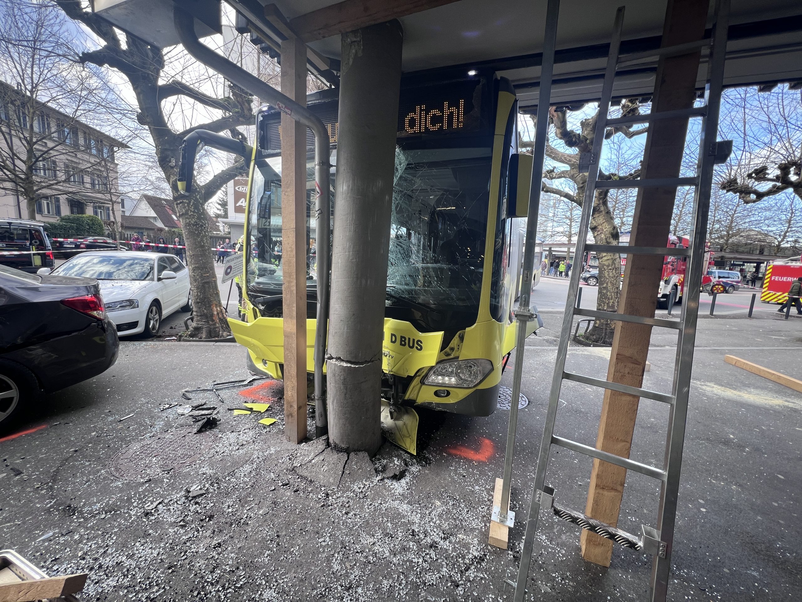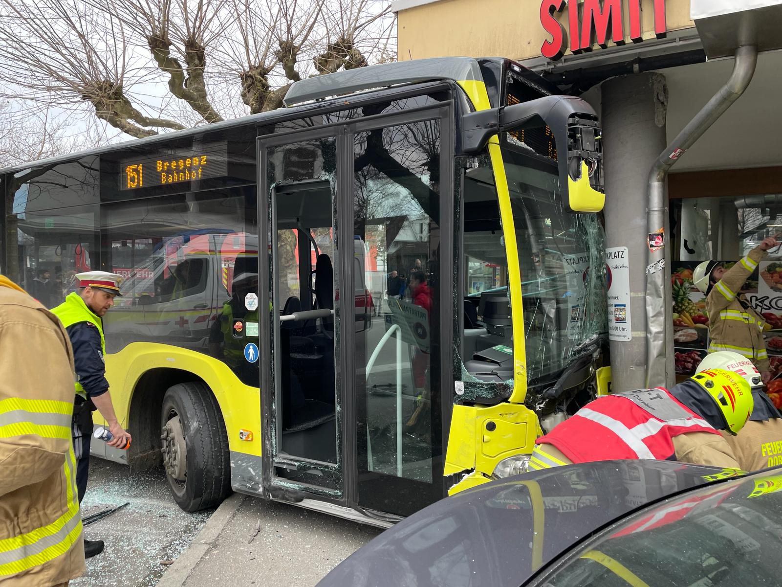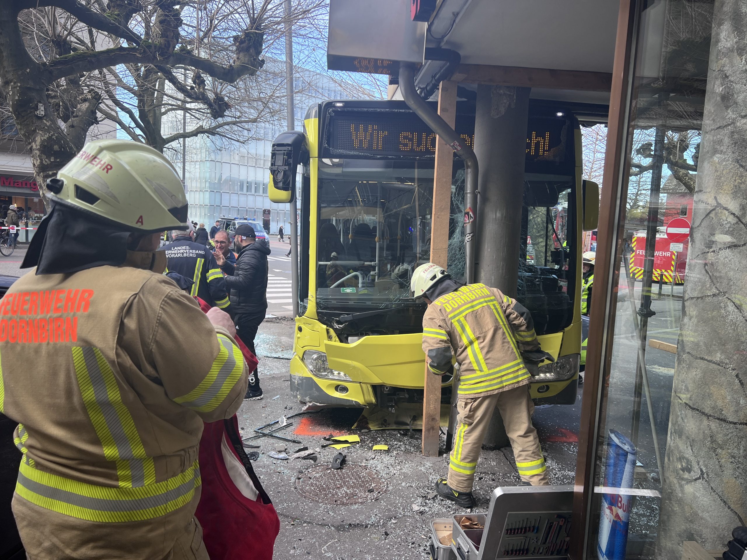 Landbus kracht in Gebäude - Schwerer Unfall am Dornbirner Bahnhof