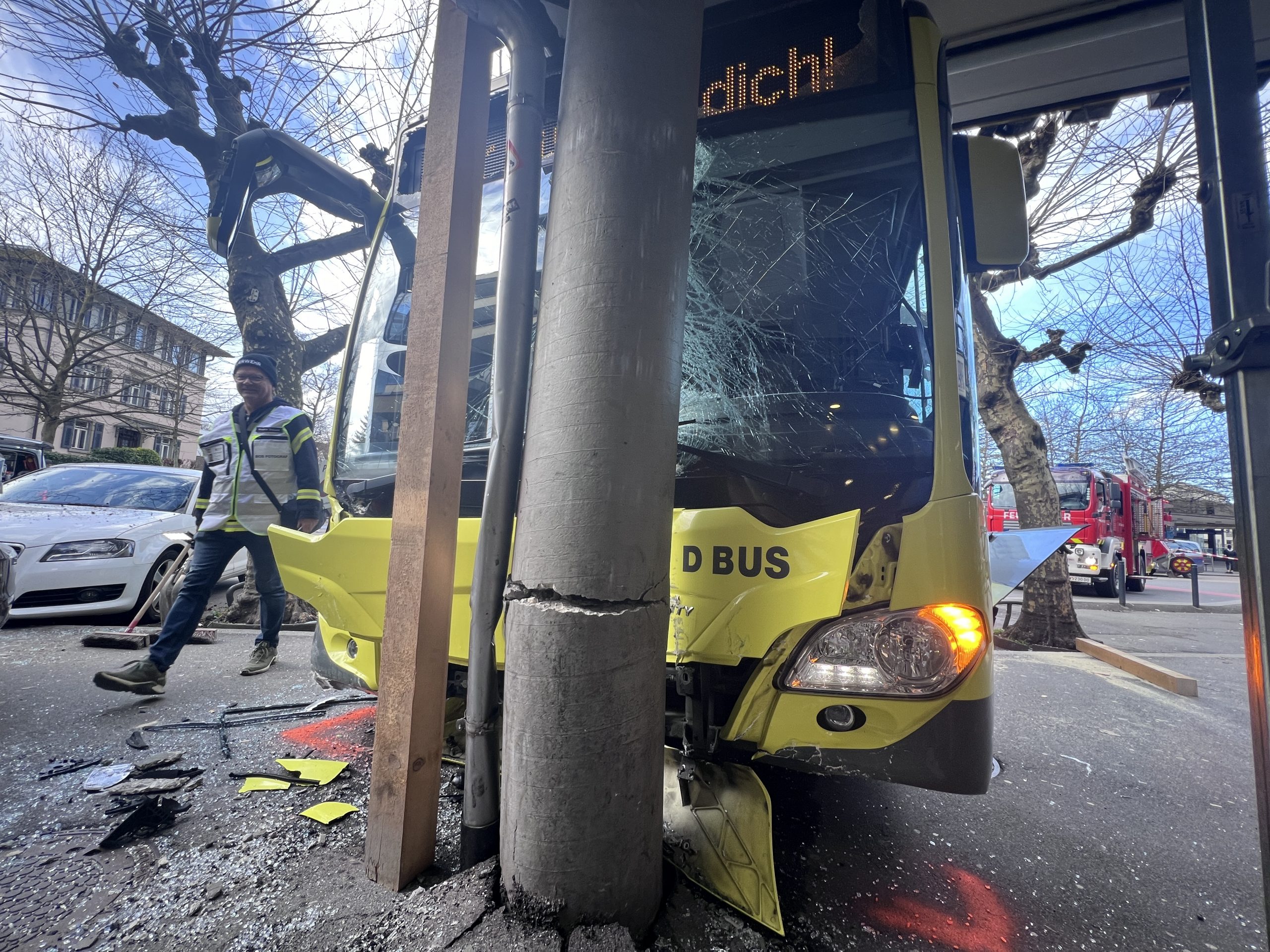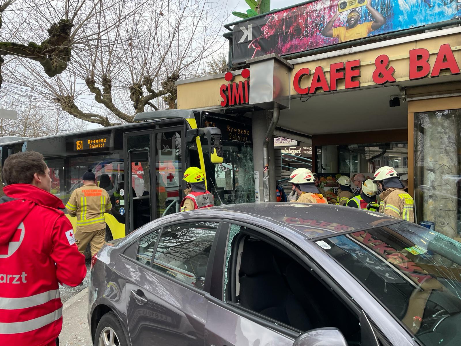 Am Samstagvormittag kollidierte in der Dornbirner Bahnhofstraße ein Landbus mit einem Pkw und einem Gebäude.