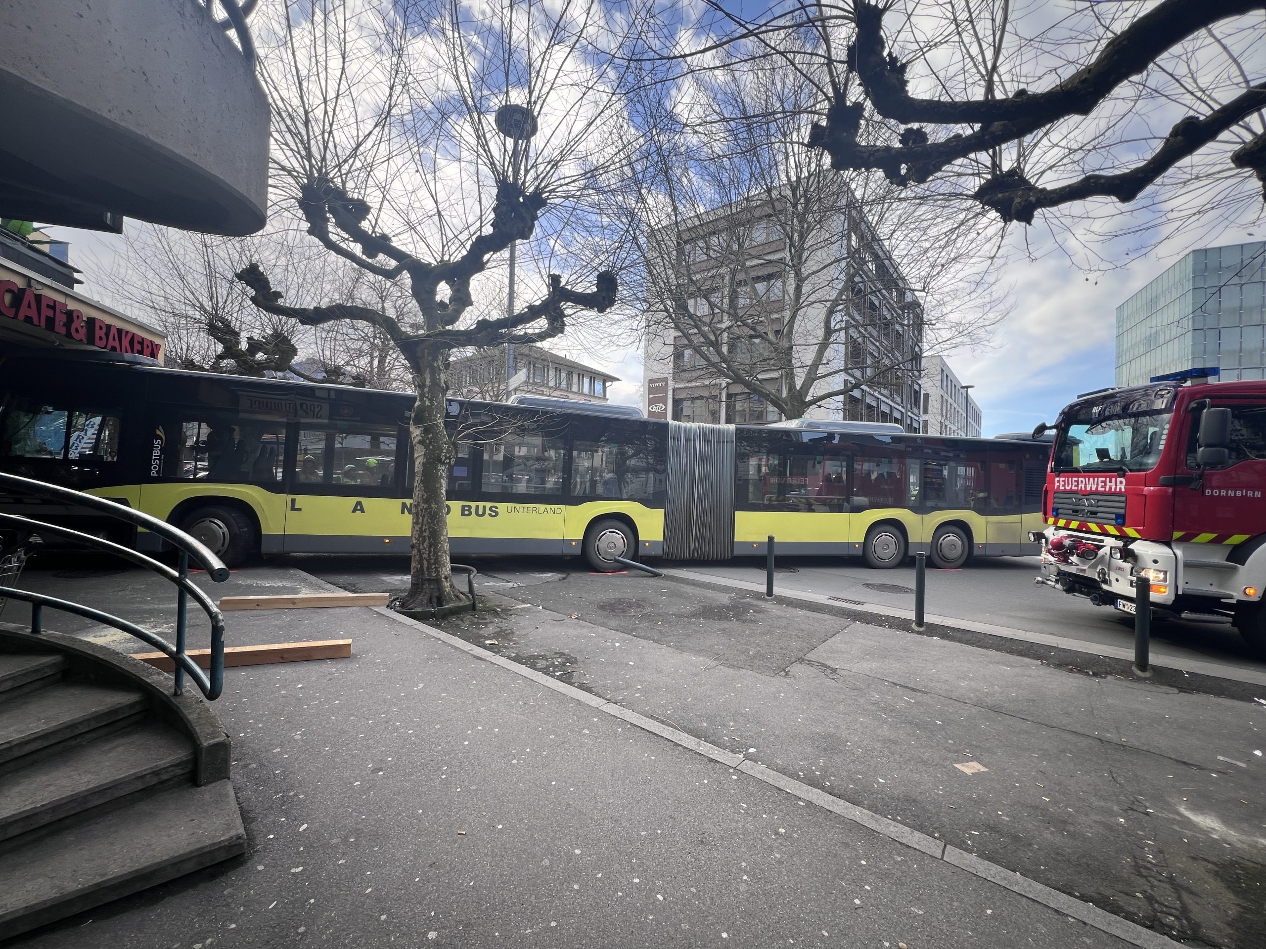 Ein Augenzeuge, der in dem Geschäft arbeitet, in das der Bus beinahe gekracht wäre berichtet, wie er den Unfall erlebt hat. Gott sei Dank habe die Säule den Bus gestoppt und es sei nicht mehr passiert, so der Mann.