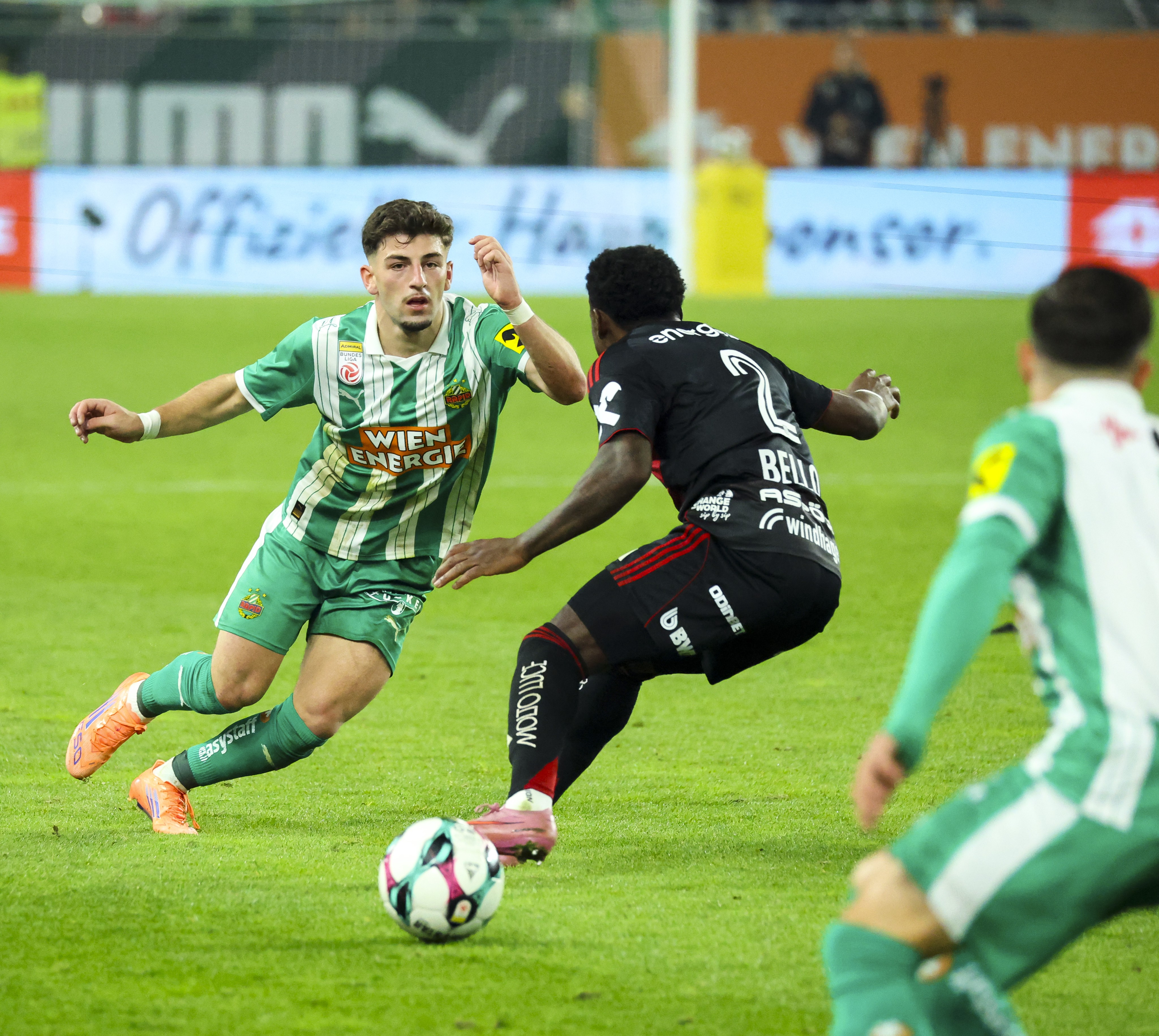 Während Stöger seine Startelf nach der Länderspielpause nur an einer Position änderte - der wieder fitte Janis Antiste stürmte von Beginn weg -, rührte Kühbauer in seiner ersten Aufstellung kräftig herum und nahm gleich fünf Wechsel vor. Der 54-Jährige setzte in der Defensive auf eine Dreierkette, die bei Rapid-Angriffen zu einem massiven Fünfer-Riegel wurde. Der Brasilianer Joao Tornich - auch Alemao genannt - agierte als zentraler Innenverteidiger.