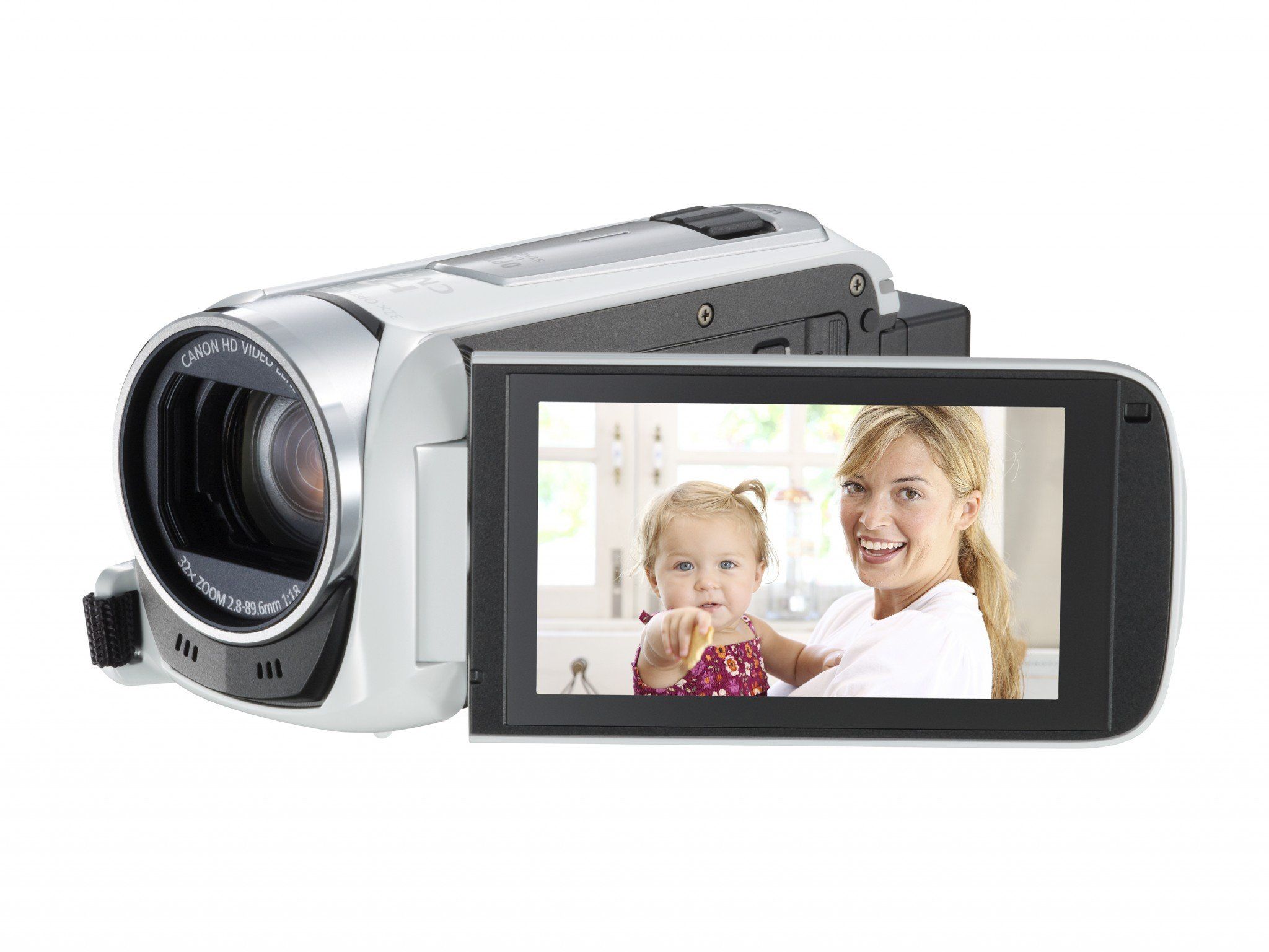 Auch der kostengünstigere Canon LEGRIA HF R406 verfügt über den hochwertigen Full-HD-CMOS-Sensor und dem zugehörigen, 32-fachen Zoom, allerdings wurde bei diesem Modell sowohl auf WLAN, wie auch auf einen internen Speicher verzichtet. Das Gerät richtet sich an den preisbewussten Filmer, der auf fortgeschrittene Optionen wie das Teilen von Inhalten verzichten kann, und einfach nur drauflos filmen möchte. Der Baby-Modus ist allerdings auch hier vorhanden, ebenso wie die Smart-Automatik, die selbständig 38 verschiedene Aufnahmesituationen erkennt, und der dynamische Bildstabilisator.