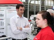 In der Hilti AG in Thüringen stehen derzeit 80 Lehrlinge in den Bereichen Maschinentechnik, Zerspanungstechnik und Konstruktion in Ausbildung. Bernd Schwendinger, Leiter der Aus- und Weiterbildung, erläuterte das Hilti-Ausbildungskonzept, das auch eine eigene Fachkräfteakademie enthält. Hier können sich die Lehrlinge nach dem Lehrabschluss zu Fach- und Führungskräften aus- und weiterbilden lassen.